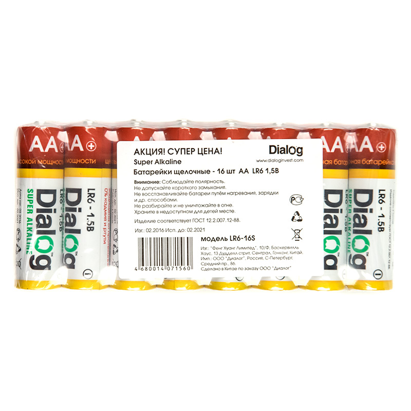 AA alcaline batteries, 16 PCs. in plastic shrink Dialog LR6-16S
