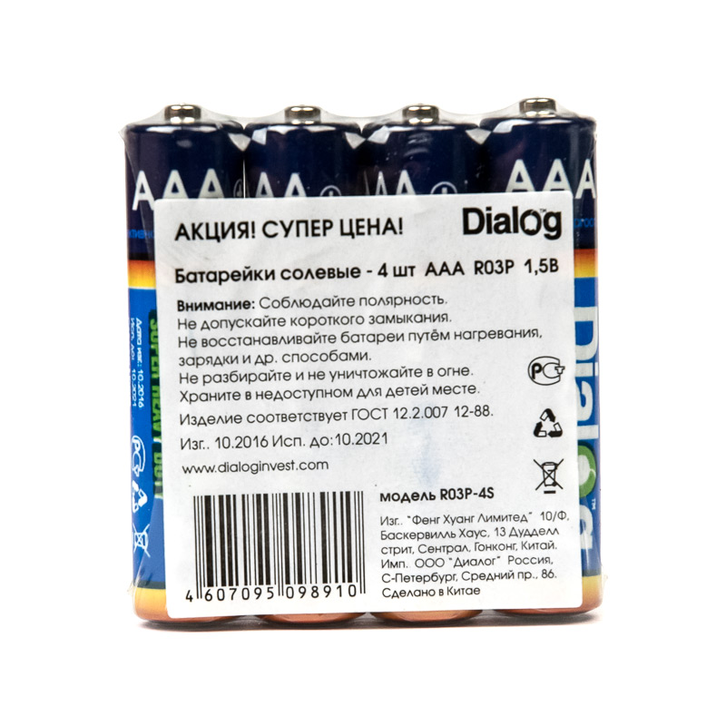 AAA saline batteries, 4 PCs. in plastic shrink Dialog R03P-4S