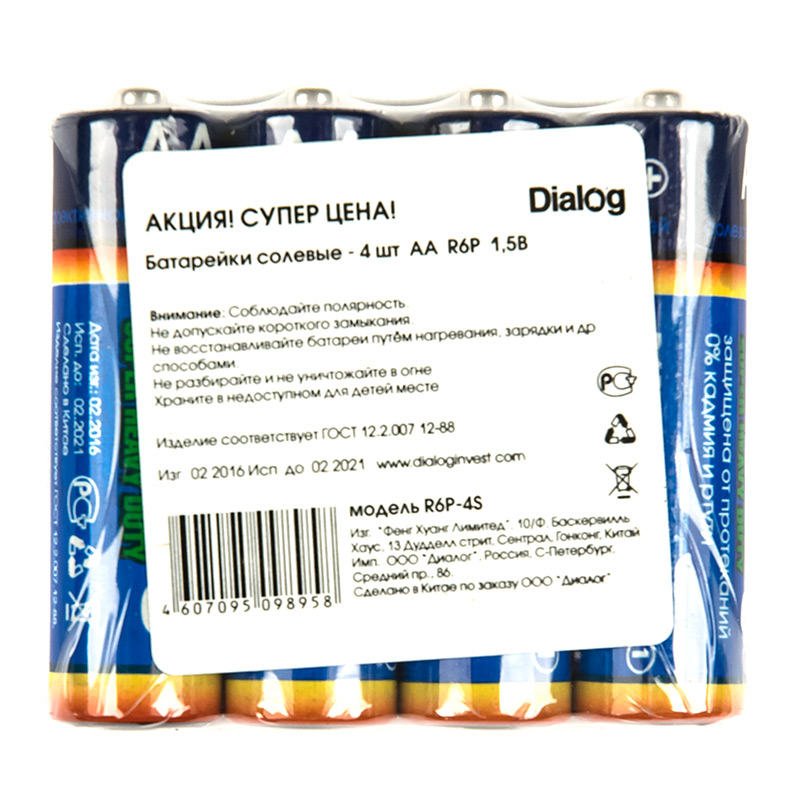 AA saline batteries, 4 PCs. in plastic shrink Dialog R6P-4S