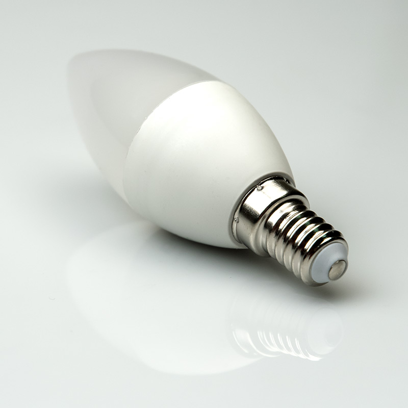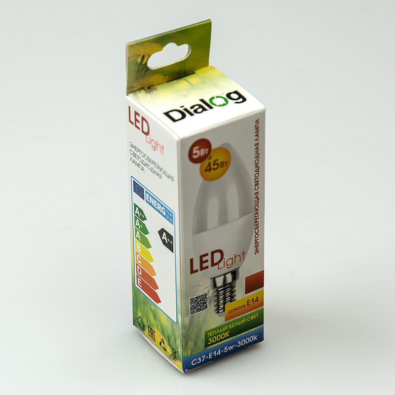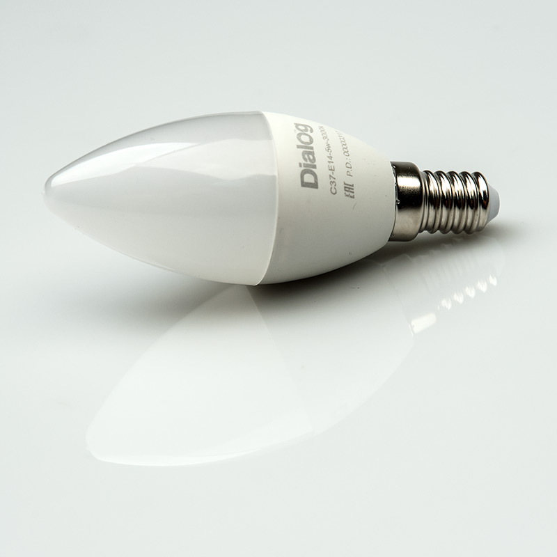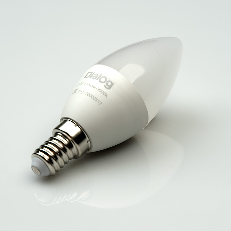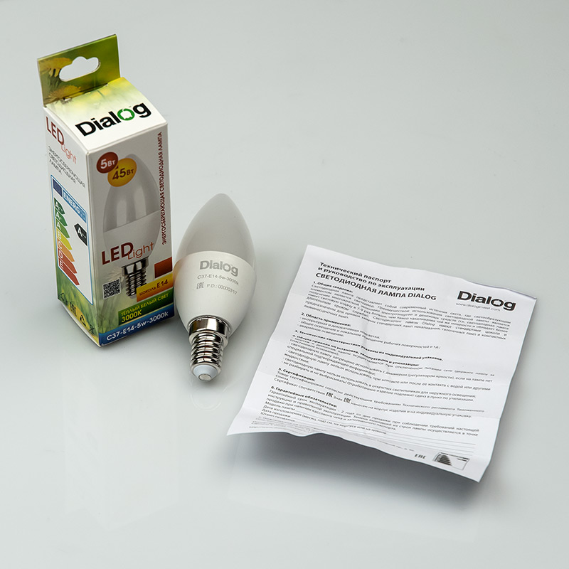 | Model | C37-E14-5W-3000K | | Lamp type | LED general purpose lamp for residential use | | Base type | E14 | | Electricity supply | ~220 V, 50 Hz | | Power, W | 5 | | Approximately corresponds to the light flux of an incandescent lamp of specified power, W | 45 | | Life time, hours | up to 20 000 work hours | | Light angle | 160° | | Bulb type | C37 | | Matt / transparent bulb | Matt | | Color temperature, K | 3000 K, warm white light | | Operating temperature, °C | -20 ~ +40 | | Luminous flux, Lm | 340 | | Lamp size, mm | 37*100 | | Energy saving, compared to a comparable incandescent lamp,% | > 80 | | Bulb material | Plastic | | Weight, g | 22 | | Other characteristics | Uniform illumination effect; Absence of UV and IR radiation; Does not contain mercury | | Complectation | LED lamp, combined user manual/warranty card, packing |