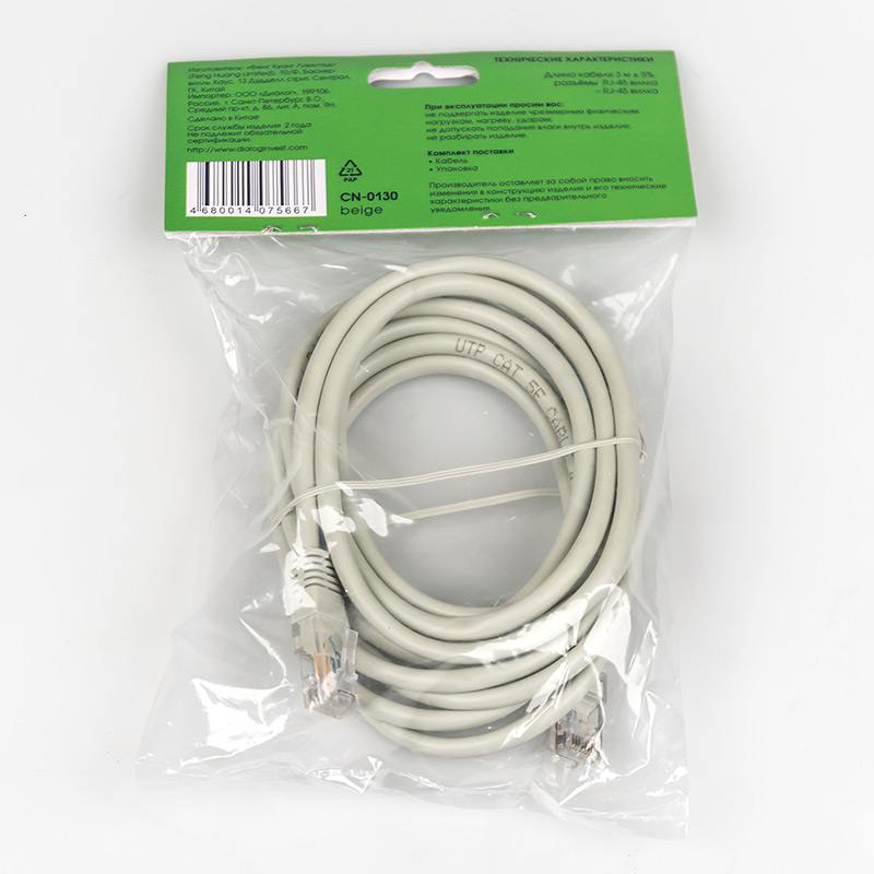 Dialog production :: Patch cable 3m Dialog CN-0130 Beige - Twisted pair Cat5e 8P8C (RJ45) patch cable 3.0m