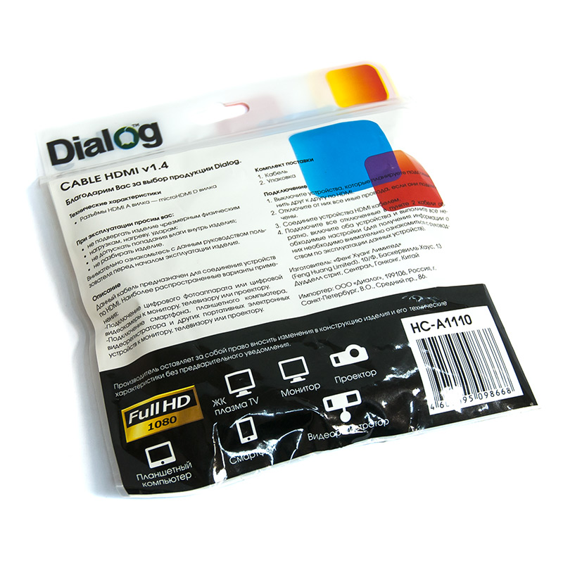 Dialog production :: HDMI-Micro HDMI cable 1m Dialog HC-A1110 - HDMI v1.4b HDMI A - Micro HDMI D cable 1.0m
