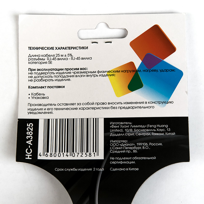 Dialog production :: Patch cable 25m Dialog HC-A3825 - Twisted pair Cat5e 8P8C (RJ45) patch cable 25.0m