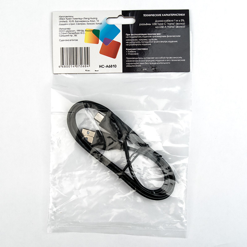 Dialog production :: USB Type-C (M) - USB A (M) cable v2.0, 1m Dialog HC-A6810 - USB Type-C (M) - USB A (M) cable v2.0, 1m