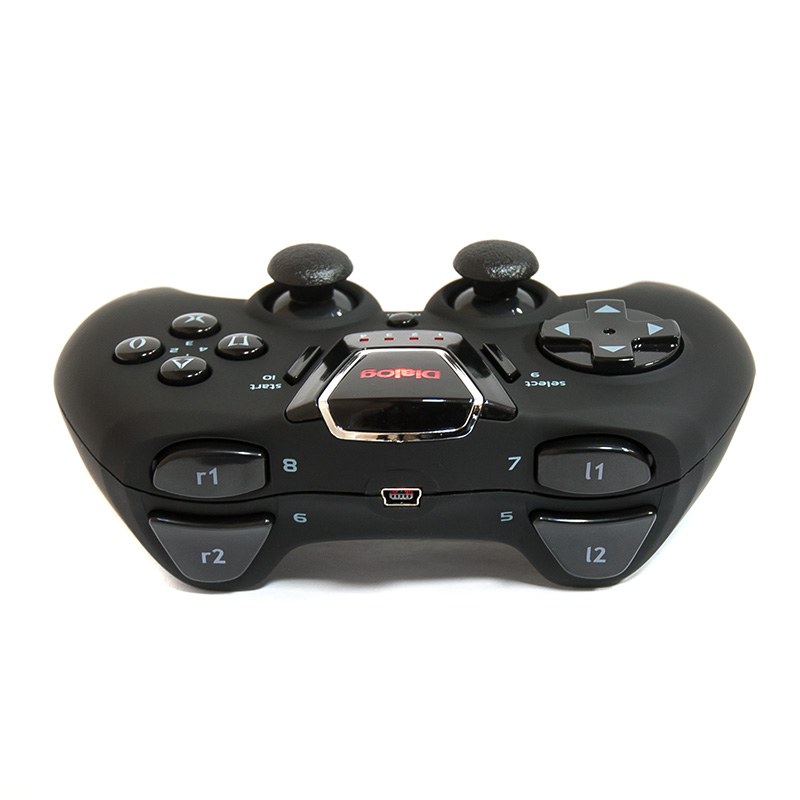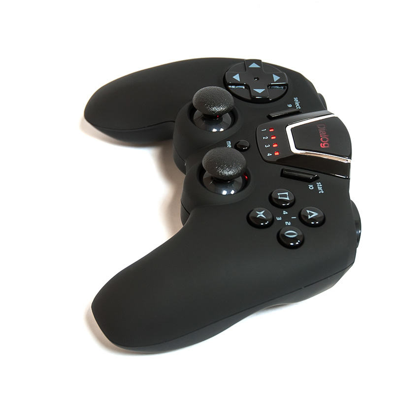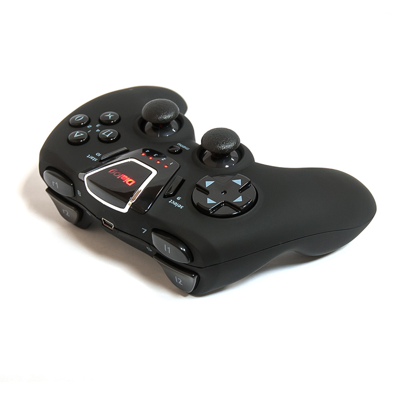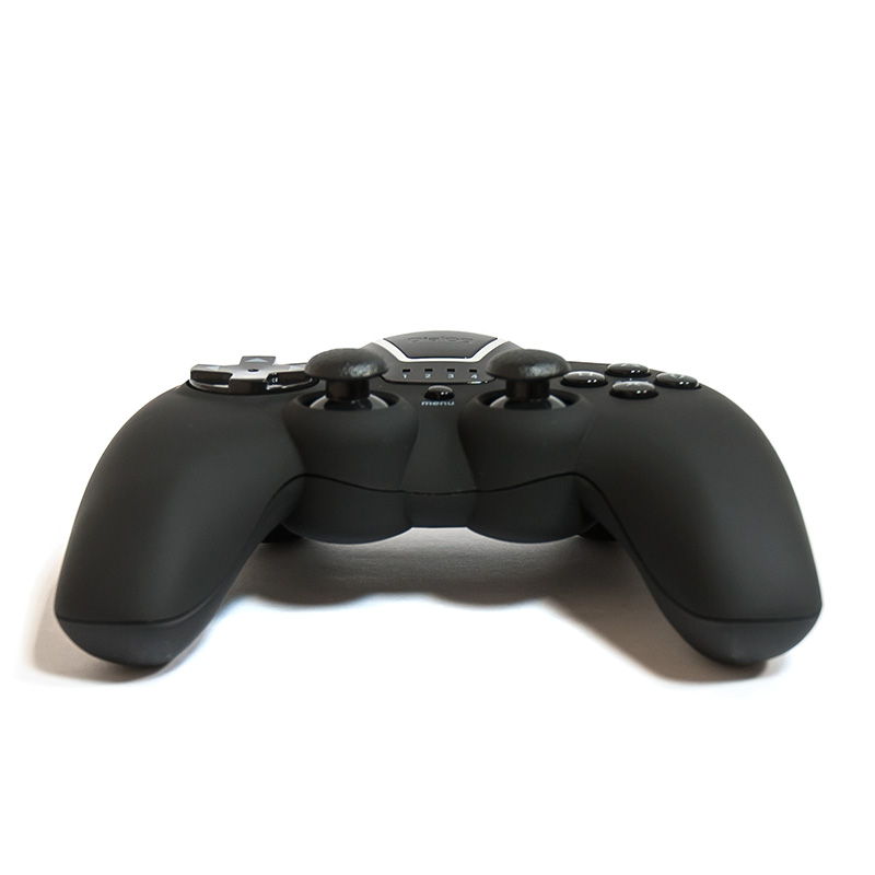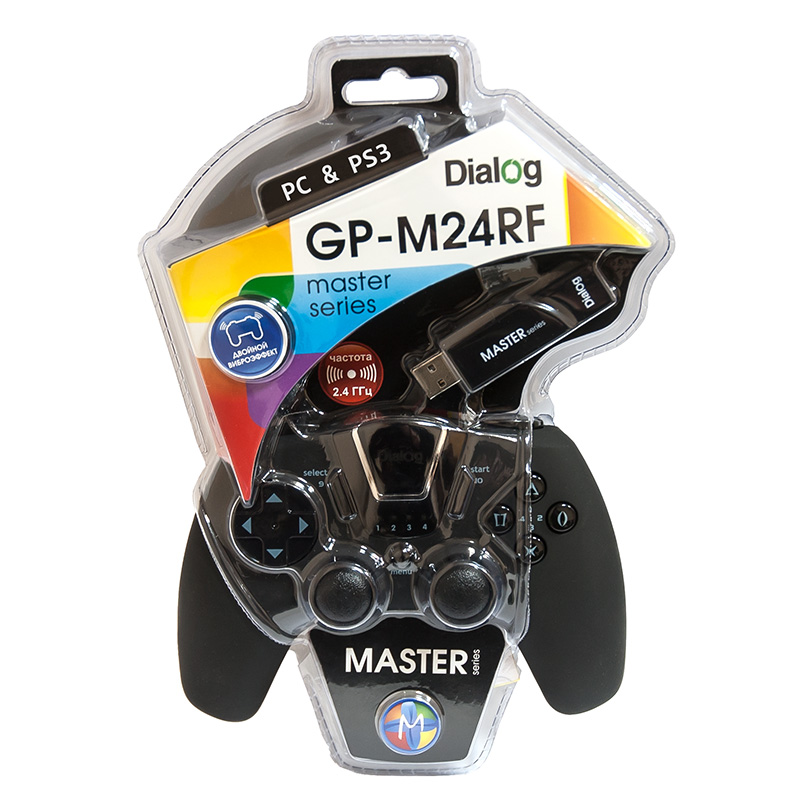 | Model: | GP-M24 RF Black | | Game consoles support: | PS3 | | Color: | Black soft-touch body, black buttons | | Interface: | USB 1.1 or 2.0 | | Operation modes: | Digital and analog | | Controllers: | 8-positional direction switch, two axis controllers (X,Y,Z,Rz), control buttons | | Number of buttons: | 13 | | Vibration: | Yes, 2 vibration motors | | LED lighting: | No | | Wireless interface: | Yes, 2.4 GHz, reliable work zone up to 10 meters | | Power source: | Built-in accumulator | | Cable length: | 2,2m ± 0,1m | | Detachable cable: | Yes | | Minimum system requirements: | For IBM PC compatible: CPU 300 mHz or higher, RAM 128 Mb or higher, free USB port (5В, 500mA) | | OS support: | Microsoft Windows XP SP2/SP3, Vista SP2, Windows 7; Microsoft DirectX 9.0c or higher | | Retail box contents: | Gamepad, USB receiver, USB- miniUSB cable, user manual, software mini CD, warranty card, packing |