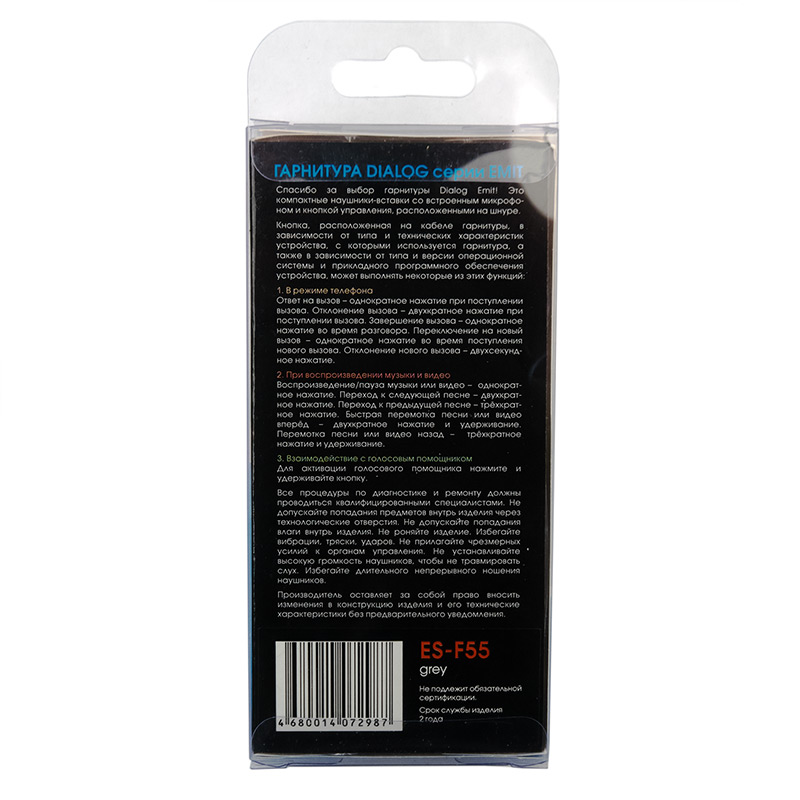 Dialog production :: Headset Dialog ES-F55 Grey - Headset