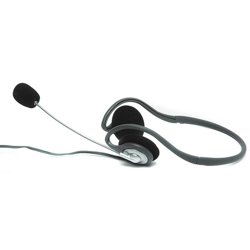 Headset with volume control and metallic flexible microphone neck, in blister package