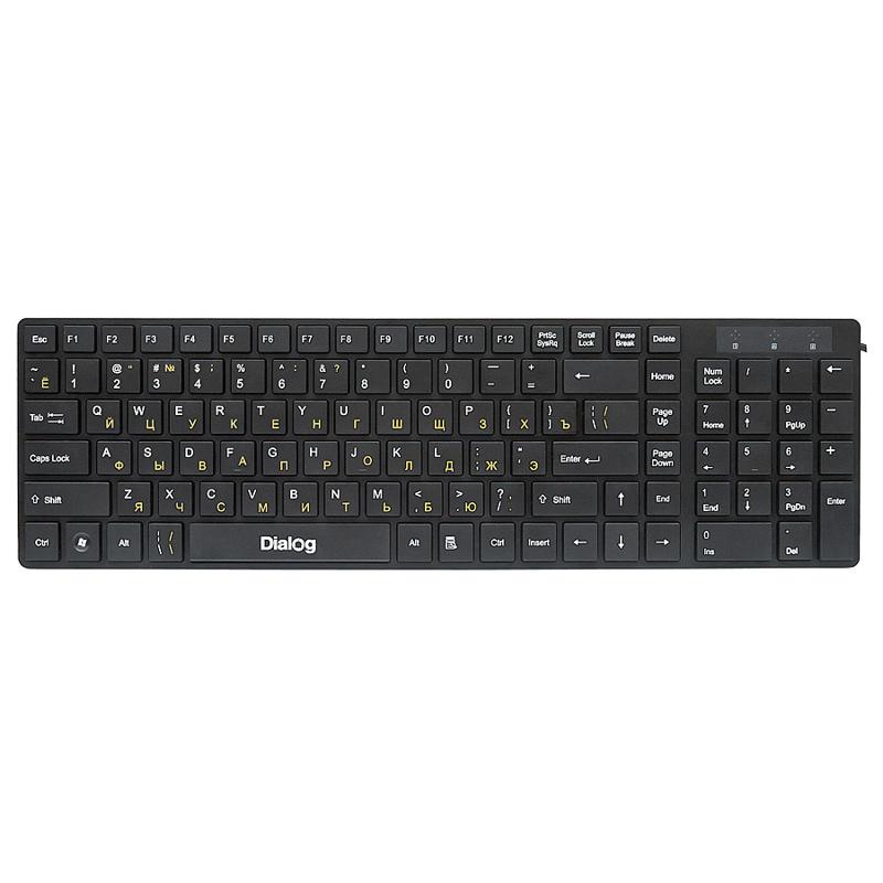 Black plastic, black keys, yellow cyrillic font