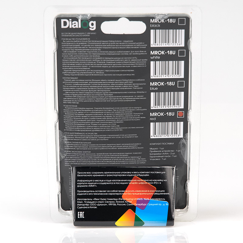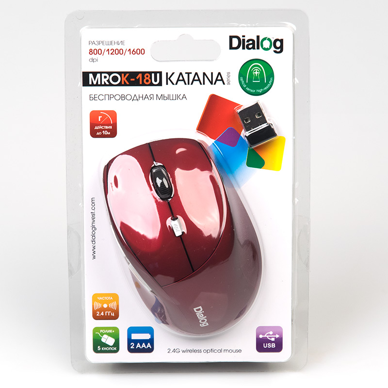 Dialog production :: Wireless mouse Dialog MROK-18U Red - KATANA wireless optical mouse