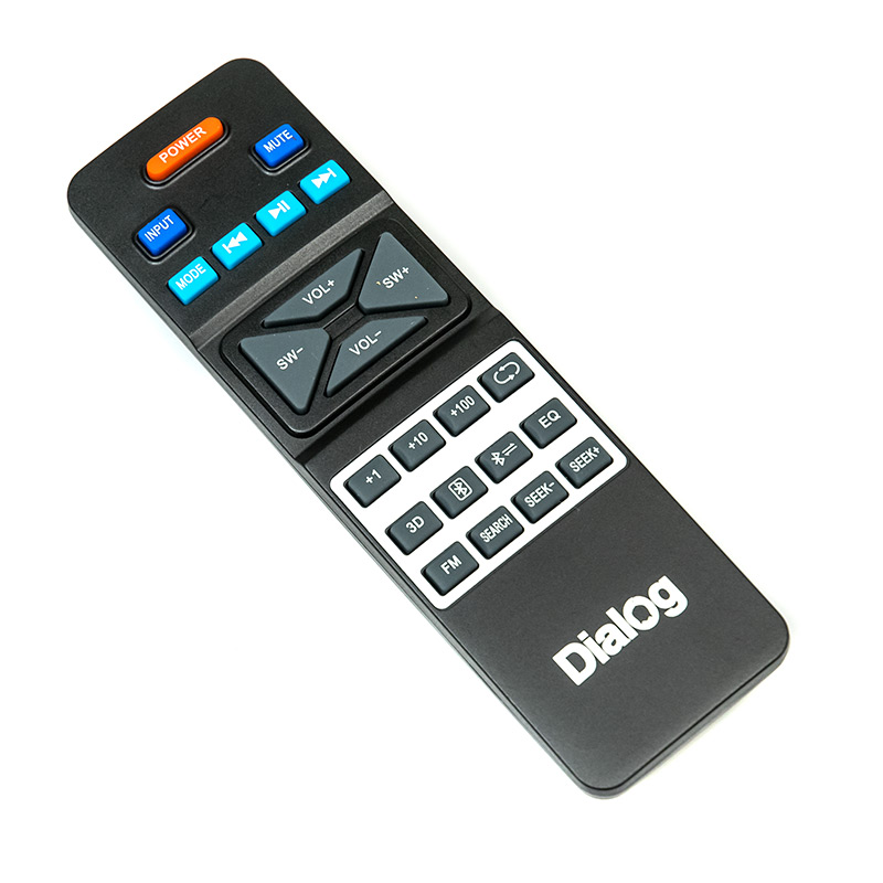 Controlssubwoofer: power (on rear side), volume knob with backlight, Treble knob, Bass knob, input source switching, pause / play, forward / backward (on the tracks or radio stations); Remote: detailed description - see user manual
