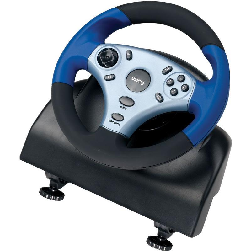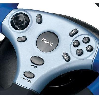| Model | DIALOG GW-12VR | | Interface | USB | | Controls | Steering wheel, 2 pedals, 4 gear shifting under-wheel buttons, 12 programmable buttons, 8-position mini joystick, power LED, mode and vibration LED | | Steering wheel vibration | Yes | | Steering wheel diameter, mm | 260 | | Steering wheel degree of rotation | 270 | | Material | Plastic. Rubbered steering wheel | | Overall dimensions (H*L*D, mm) | 295*390*314 | | Pedals | Pedals block - gas, brakes | | Gear shifting | 4 gear shifting under-wheel buttons | | Mounting | Built-in clamp | | Additional features | Operation in one of two modes - analog or digital. Modes are switched with button on steering wheel. In analog mode, steering wheel rotation and pedals mov leads to smooth cursor moving. In digital mode, cursor changes position to maximum offset instantly | | System requirements | IBM PC compatible computer, free 500 mA USB port, Windows 98/Me/2000/XP, 64Mb RAM, 32Mb HDD free space | | Supplied parts | Steering wheel, pedals, user manual, drivers CD, 2x screws, packing |