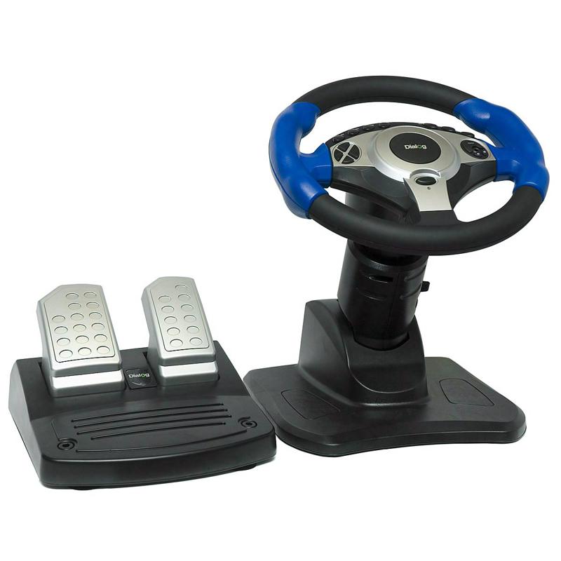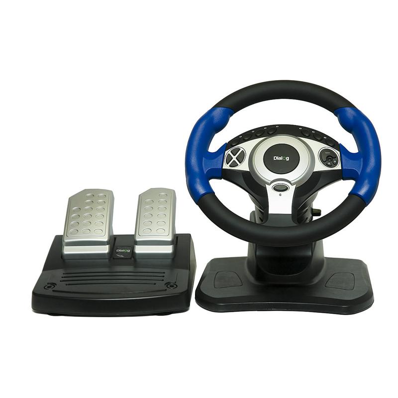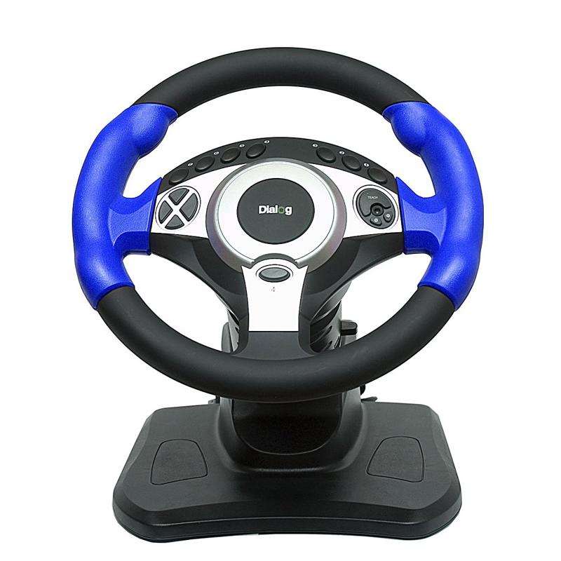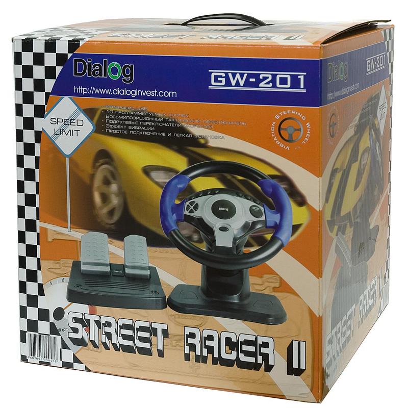 | Model | DIALOG GW-201 | | Interface | USB | | Controls | Steering wheel, 2 pedals, 2 gear shifting under-wheel buttons, 12 programmable buttons, Power LED | | Steering wheel vibration | Yes | | Adjustable steering wheel | Yes | | Steering wheel diameter, mm | 260 | | Steering wheel degree of rotation | 180 | | Material | Plastic. Rubbered steering wheel | | Overall dimensions (H*L*D, mm) | 305*305*325 | | Pedals | Pedals block - gas, brakes | | Gear shifting | 2 gear shifting under-wheel buttons | | Mounting | Built-in suckers | | System requirements | IBM PC compatible computer, free 500 mA USB port, Windows 98/Me/2000/XP, 64Mb RAM, 32Mb HDD free space, CD-ROM | | Supplied parts | Steering wheel, pedals, user manual, drivers CD, packing |