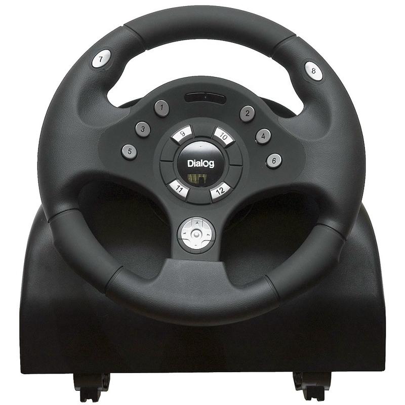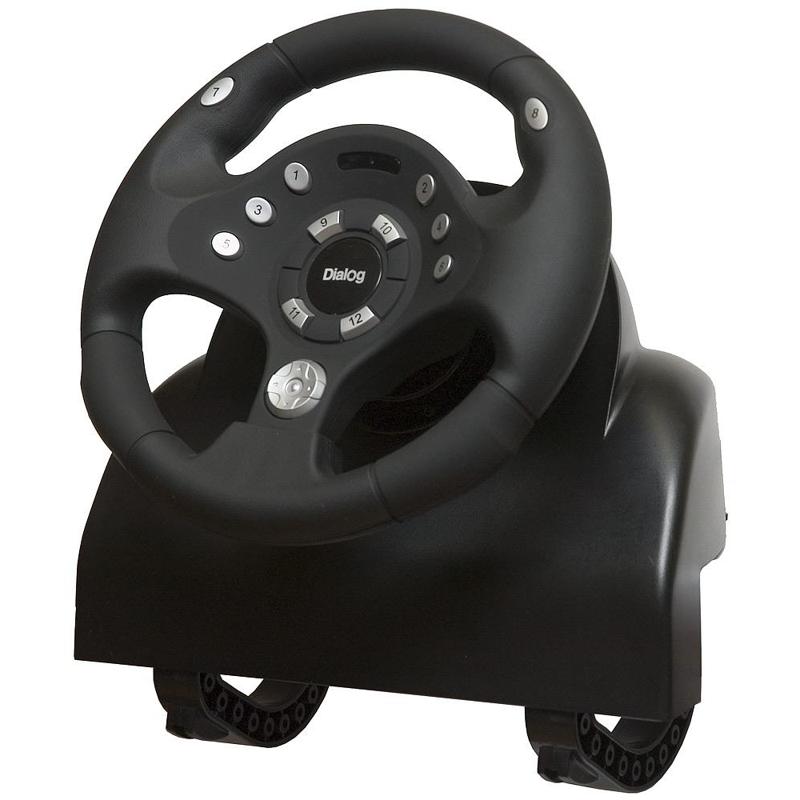 | Model | DIALOG GW-20FB | | Interface | USB | | Controls | Steering wheel, 2 pedals, 2 gear shifting under-wheel levers, 12 programmable buttons, 8-position mini joystick | | Force feedback | Yes | | Pedals vibration | Yes | | Steering wheel diameter, mm | 250 | | Steering wheel degree of rotation | 270 | | Material | Plastic. Rubbered steering wheel | | Overall dimensions (H*L*D, mm) | 295*390*314 | | Pedals | Pedals block - gas, brakes | | Gear shifting | 2 gear shifting under-wheel levers | | Mounting | Built-in clamp | | System requirements | IBM PC compatible computer, free 500 mA USB port, Windows 98/Me/2000/XP, 64Mb RAM, 32Mb HDD free space | | Supplied parts | Steering wheel, pedals, 2x screws, drivers CD, user manual, power supply 220V/50Hz, packing |