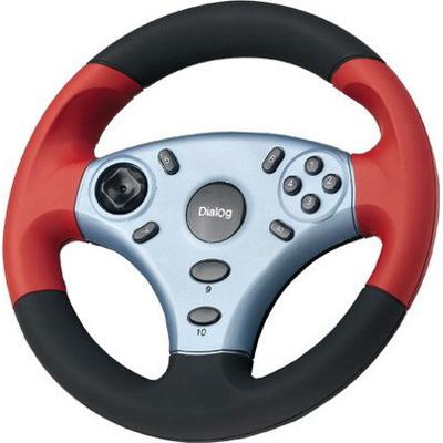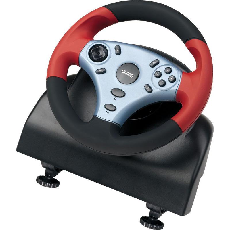 | Model | DIALOG GW-22FB | | Interface | USB | | Controls | Steering wheel, 2 pedals, 4 gear shifting under-wheel buttons, 10 programmable buttons, 8-position mini joystick, power LED, mode and force feedback LED | | Force feedback | Yes | | Pedals vibration | Yes | | Steering wheel diameter, mm | 260 | | Steering wheel degree of rotation | 270 | | Material | Plastic. Rubbered steering wheel | | Overall dimensions (H*L*D, mm) | 295*390*314 | | Pedals | Pedals block - gas, brakes | | Gear shifting | 4 gear shifting under-wheel buttons | | Mounting | Built-in clamp | | System requirements | IBM PC compatible computer, free 500 mA USB port, Windows 98/Me/2000/XP, 64Mb RAM, 32Mb HDD free space | | Supplied parts | Steering wheel, pedals, 2x screws, drivers CD, user manual, power supply 220V/50Hz, packing |