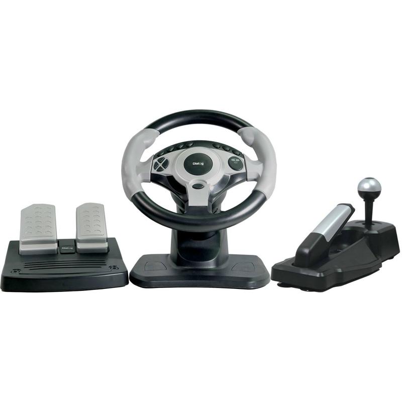 | Model | DIALOG GW-301 Grey | | Interface | USB | | Controls | Steering wheel, 2 pedals, 2 gear shifting under-wheel buttons, 12 programmable buttons, Power LED | | Steering wheel vibration | Yes | | Adjustable steering wheel | Yes | | Steering wheel diameter, mm | 260 | | Steering wheel degree of rotation | 180 | | Material | Plastic. Rubbered steering wheel | | Overall dimensions (H*L*D, mm) | 305*305*325 | | Pedals | Pedals block - gas, brakes | | Gear shifting | 2 gear shifting under-wheel buttons | | Mounting | Built-in suckers | | System requirements | IBM PC compatible computer, free 500 mA USB port, Windows 98/Me/2000/XP, 64Mb RAM, 32Mb HDD free space, CD-ROM | | Supplied parts | Steering wheel, pedals, user manual, drivers CD, packing |