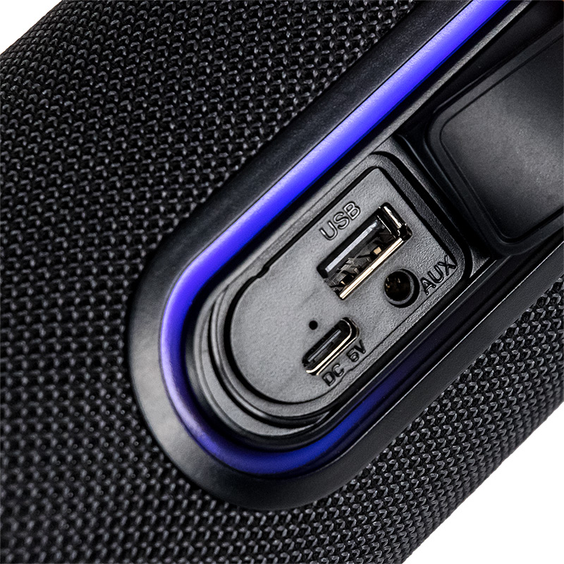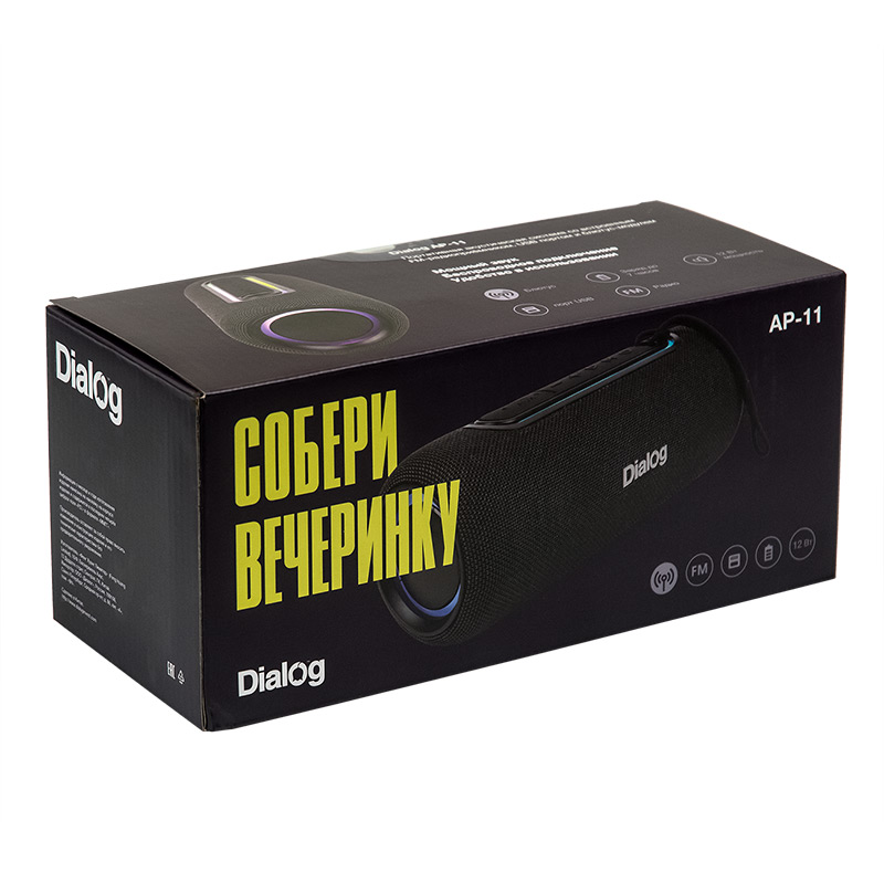| Model | AP-11 Black | | Type | Portable | | Mode | Stereo | | Power RMS, W | 12 | | Wireless interface | Yes. Bluetooth v5.1 A2DP/AVRCP/HFP | | TWS mode supported | Yes. You can build a stereo pair of two identical speakers | | Battery | Built-in, 1500 mAh, 3.7V | | Battery life | Depends on volume, use mode, ambient temperature. Approximate autonomous playback time at medium (50%) volume at room temperature (about 22 °C), is 4 hours, and about 2 hours at maximum volume | | Waterproof | IPX5 | | Powerbank mode | No | | Headset mode | Yes | | Yes | | Supported media | No | | Yes, internal antenna | | Supported file system type and size | FAT16/FAT32, up to 32Gb | | Supported file formats | MPEG-1 Audio Layer 3 (MP3), with 64 - 320 kbps bitrate | | Components | compact outdoor speaker system | | Amplifier | Built-in | | SNR | 70 | | Harmonic distortion | 0.5% | | Power suppply | Built-in battery or power from external AC power adapter (5V, USB Type-C) | | Inputs | Line in AUX (3.5mm minijack) | | Karaoke | No | | Controls | power on/off, flash play/pause/scan for radio stations in radio mode/backlight mode/backlight off, switch source (long press TWS on), next track/station (long press volume up), previous track/station (Volume down with long press) | | Remote control | No | | Indication | Status LED on the buttons block | | Color music | Yes, switchable RGB color music on the side passive speakers and around the button block | | Loud speaker(s) | 2*2″ + passive radiators 2*2″ | | Power (W) | 12 | | Impedance (Ohm) | 4 | | Frequency range (Hz-kHz) | 80-16 | | Case | Plastic | | Grill | Non-removable black textile grill | | Case dimensions (H*L*D, mm) | 242*92*92 | | Weight (Kg) | 0.75 | | Carriynd strap | Removable textile carrying loop, attaches to the eyelet on the top panel | | Supplied parts | acoustic system - 1 pc, cable TRS 3.5mm "jack" => TRS 3.5mm "jack" for connecting to a signal source - 1 pc, cable for recharging the battery USB Type A - Micro USB type C - 1 pc, textile carrying loop , user manual with warranty card - 1 pc, packaging - 1 pc |
