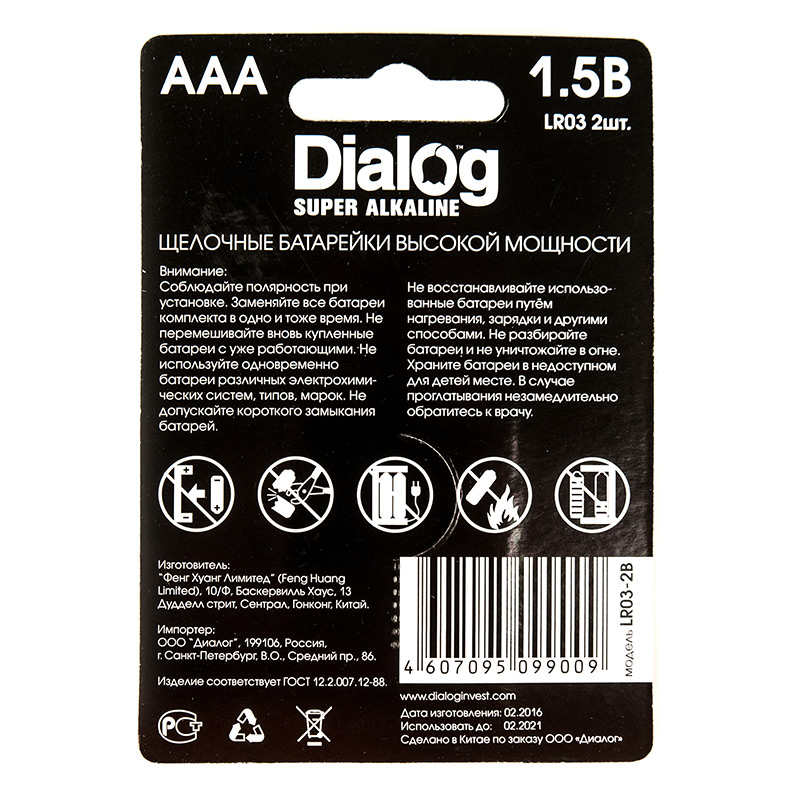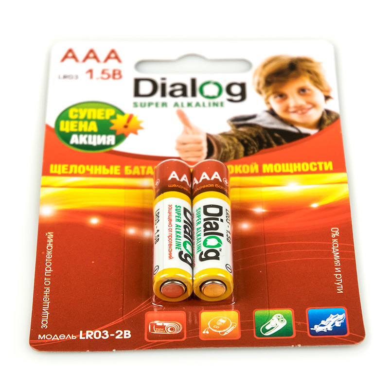 Щелочные батарейки ААА, 2 шт. в блистере Dialog LR03-2B