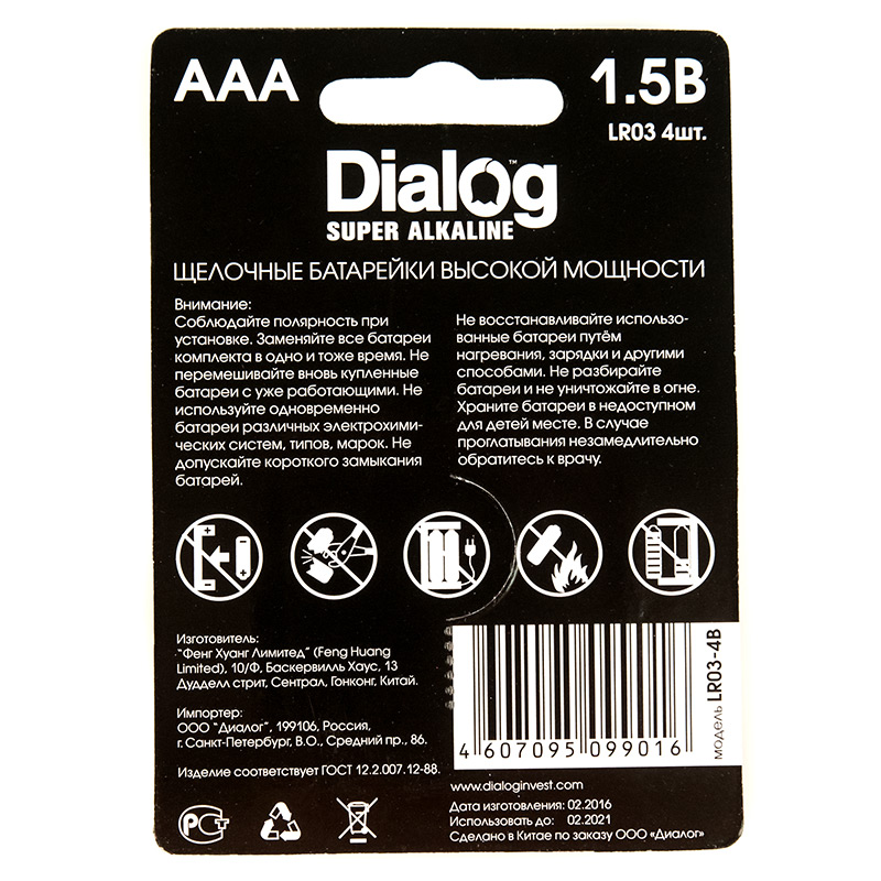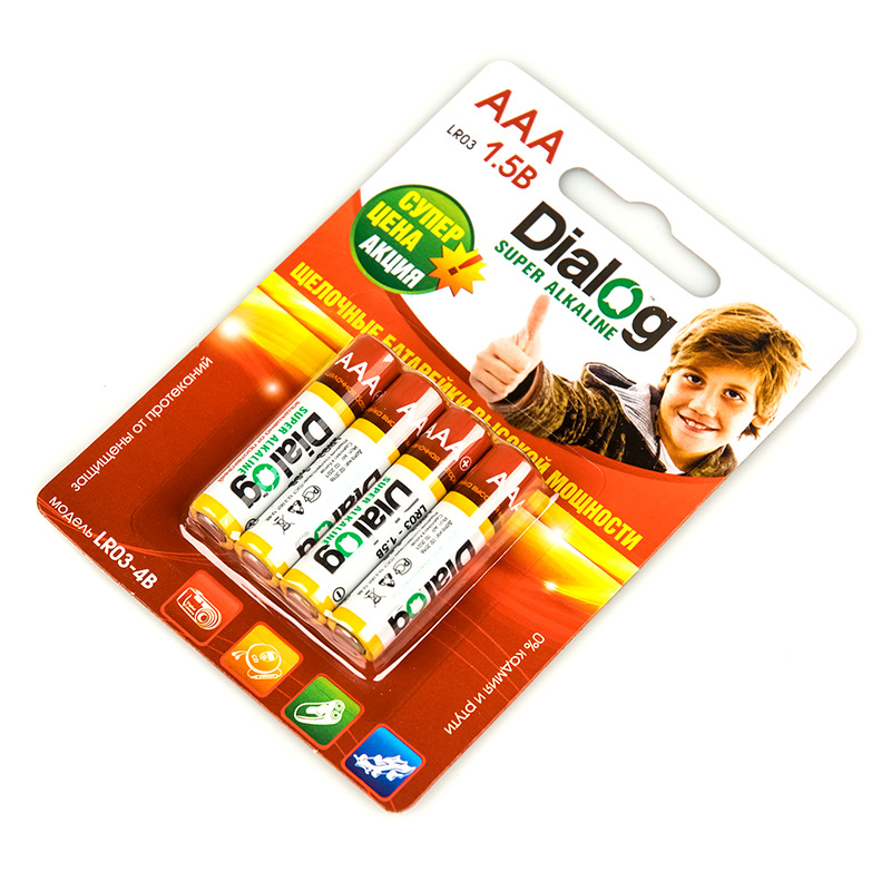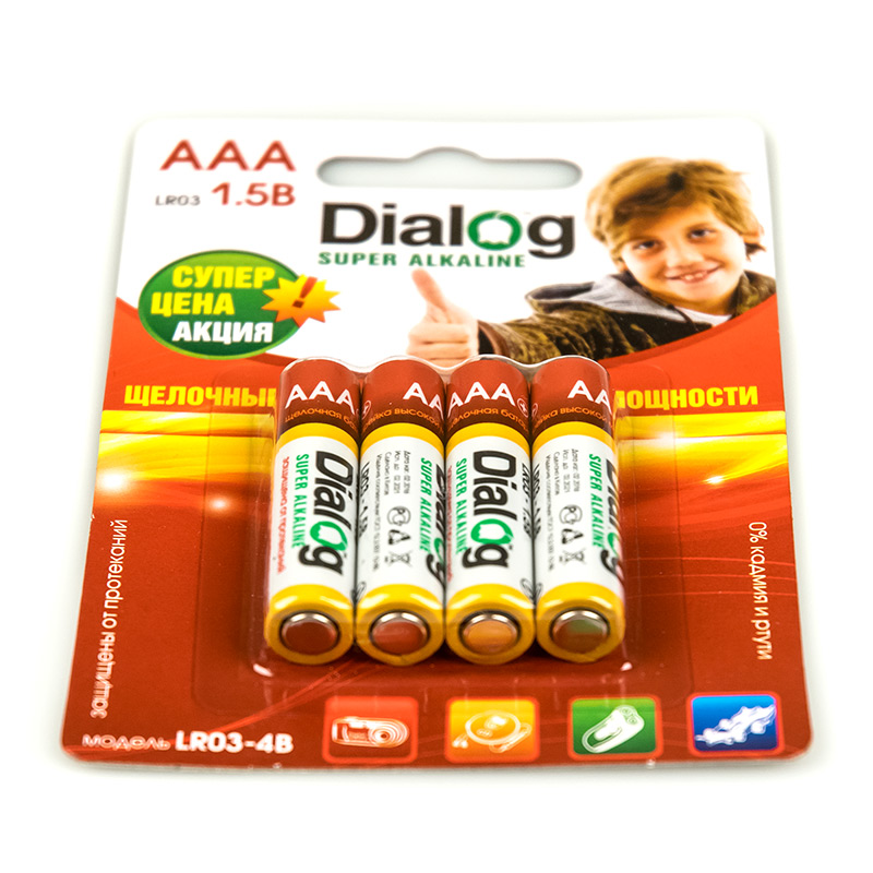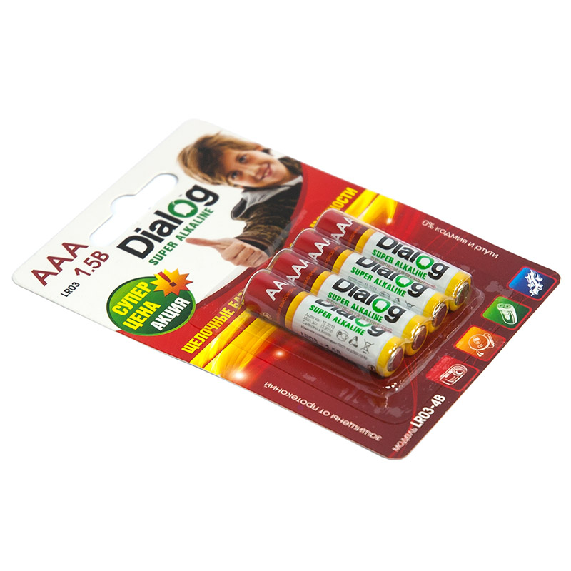 Щелочные батарейки ААА, 4 шт. в блистере Dialog LR03-4B