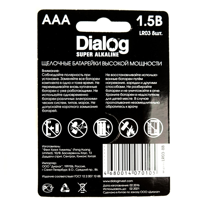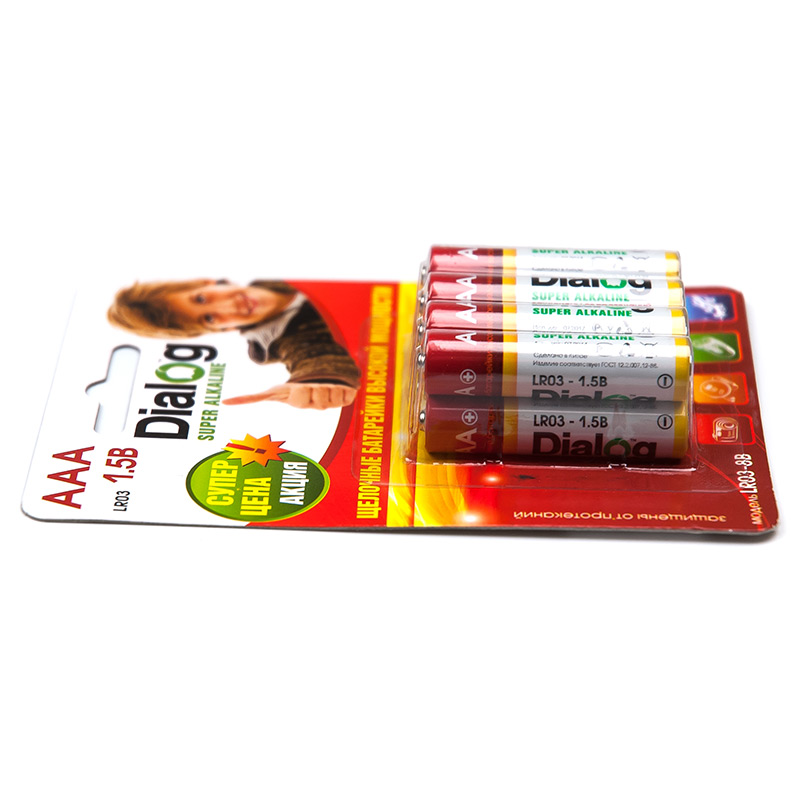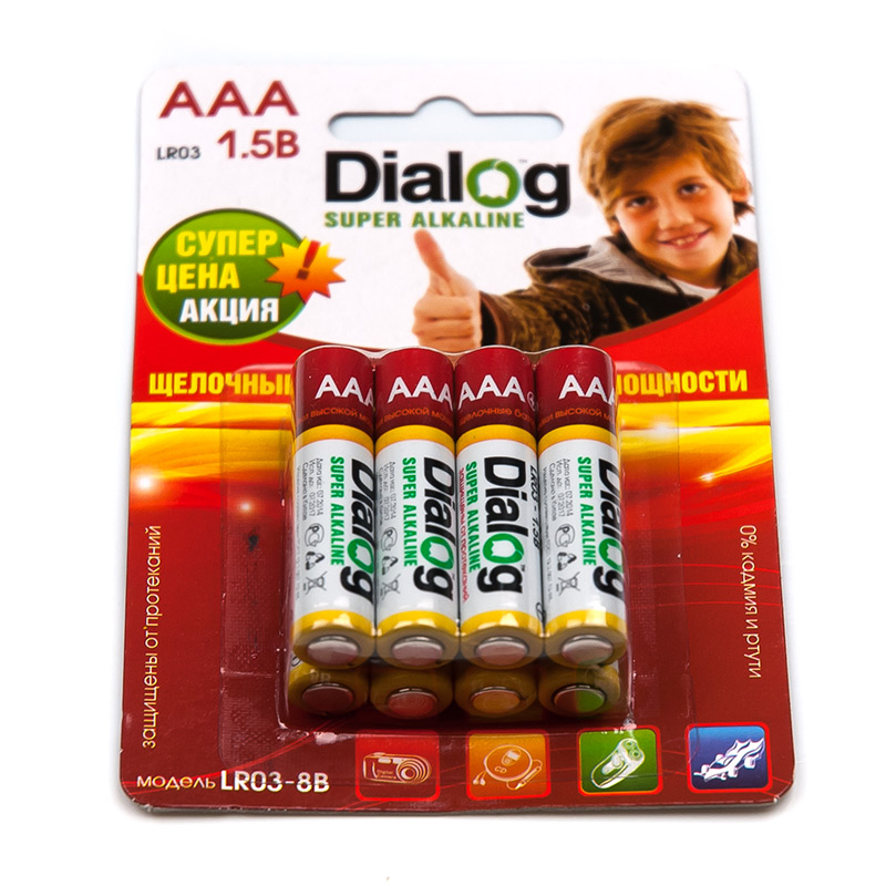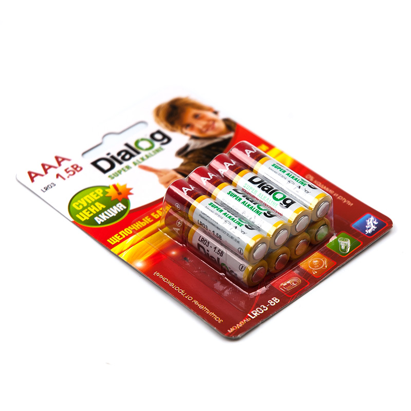 Щелочные батарейки ААА, 8 шт. в блистере Dialog LR03-8B
