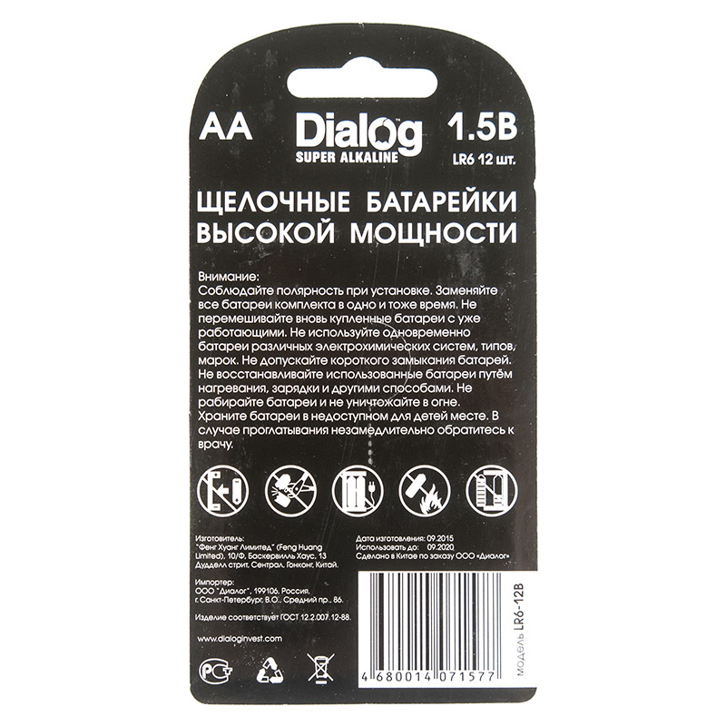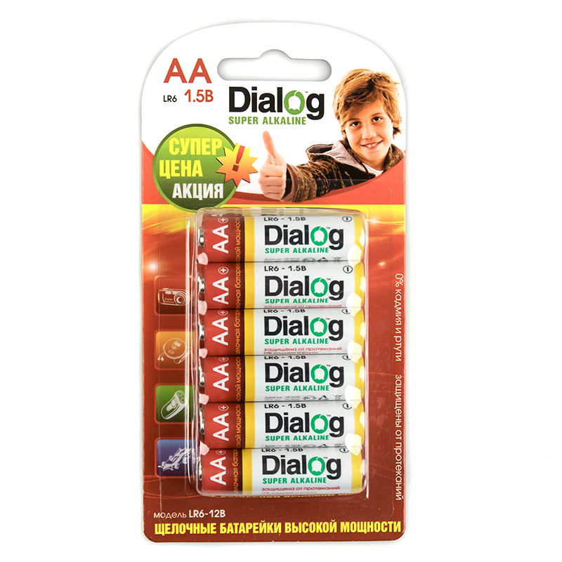 Щелочные батарейки АА, 12 шт. в блистере Dialog LR6-12B