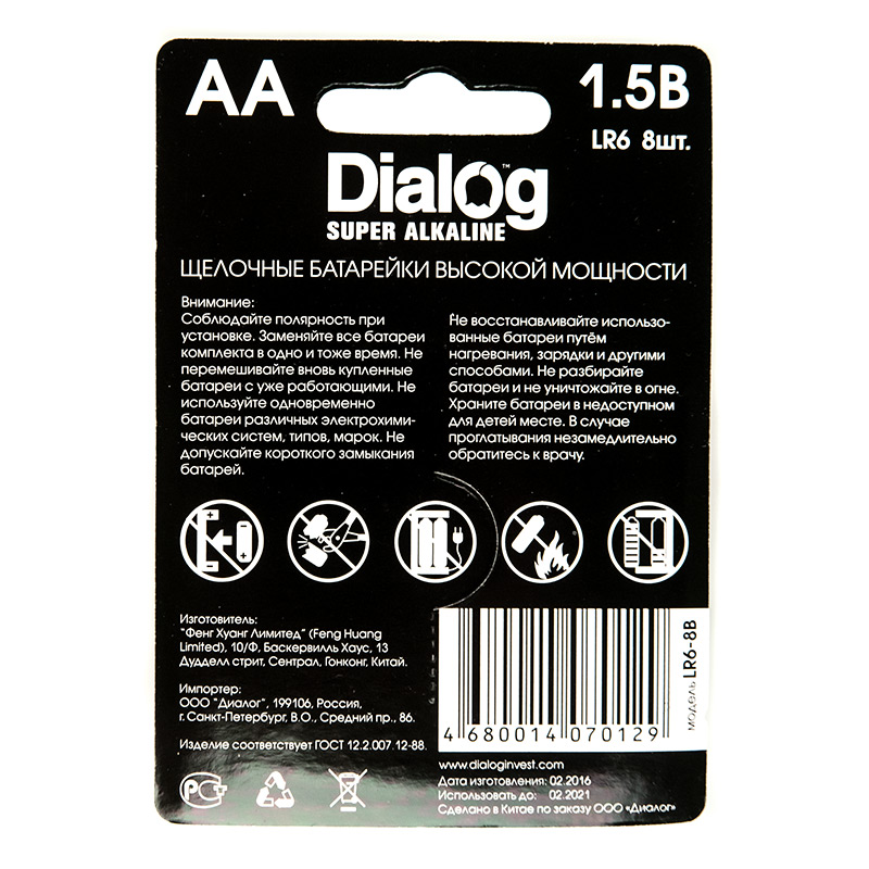 Щелочные батарейки АА, 8 шт. в блистере Dialog LR6-8B