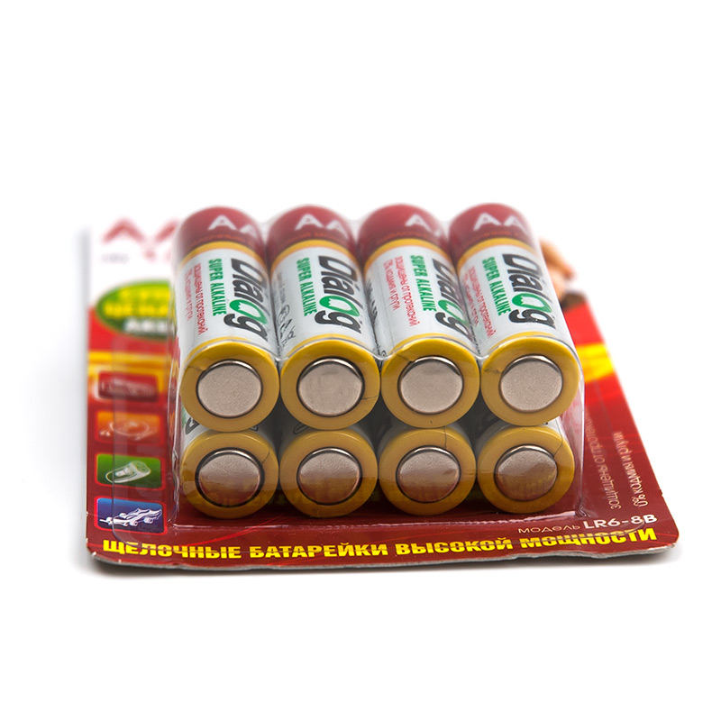 | Артикул | LR6-8B | | Тип | Батарейка | | Типоразмер | AA | | Электролит | Щелочной | | Перезаряжамые | Нет | | Название по стандарту IEC | R6 | | Номинальное напряжение, В | 1,5 | | Использование | В приборах со значительным энергопотреблением: средние и большие игрушки с электромоторами, фонарики на лампах накаливания, портативные аудио- и видеопроигрыватели, фото- и видеокамеры и т.д. | | Срок хранения | 3 года | | Количество в розничной упаковке (шт) | 8 | | Код ТНВЭД | 8506101100 |