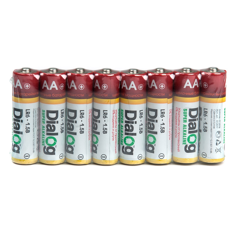 Щелочные батарейки АА, 8 шт. в термоплёнке Dialog LR6-8S