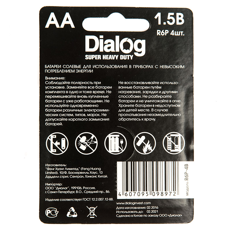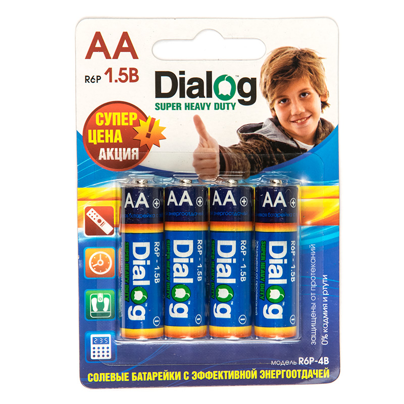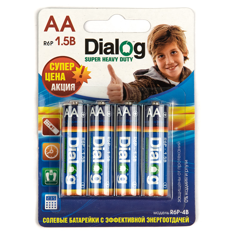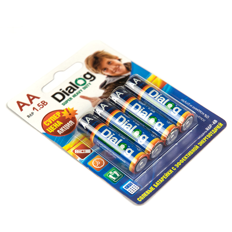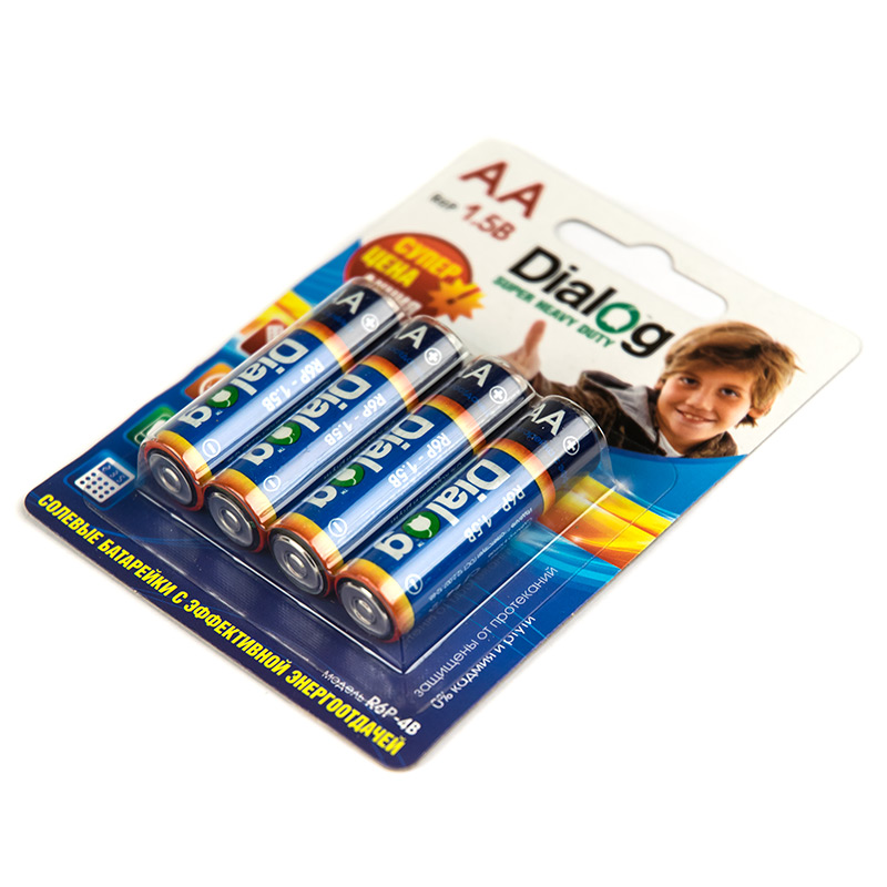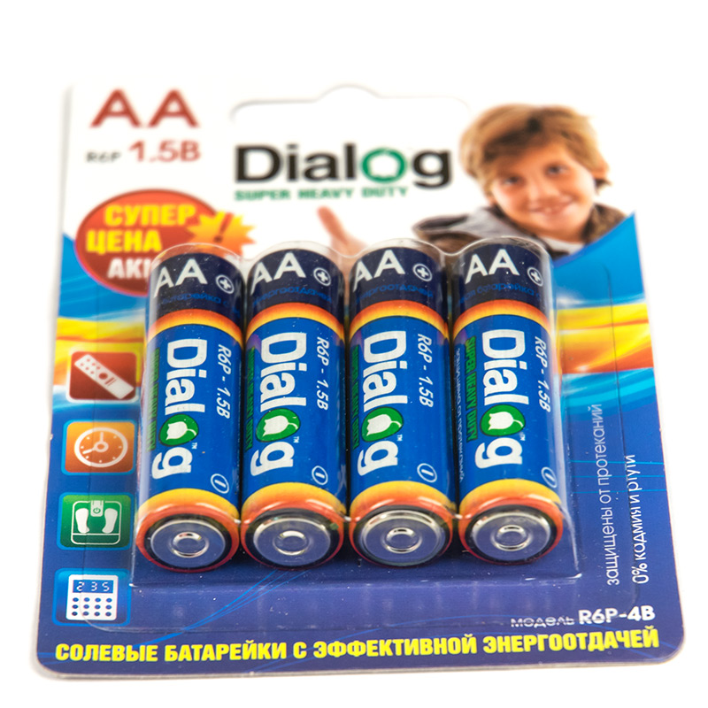 Солевые батарейки АА, 4 шт. в блистере Dialog R6P-4B