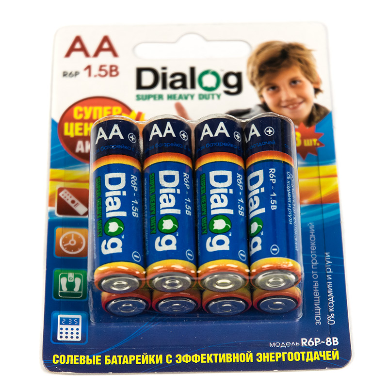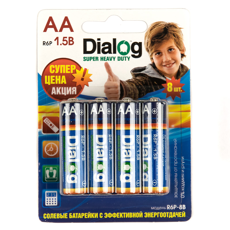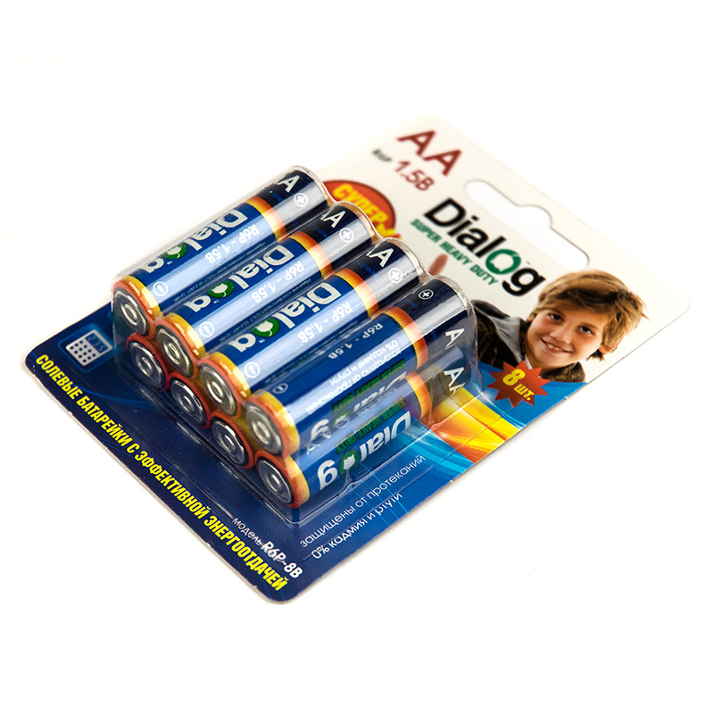 Солевые батарейки АА, 8 шт. в блистере Dialog R6P-8B