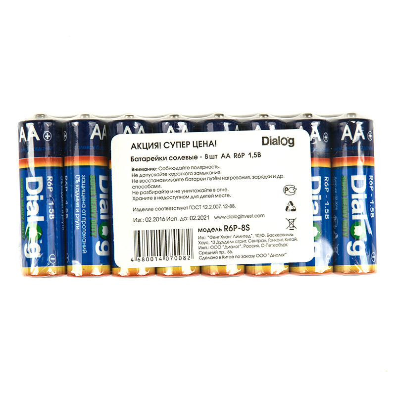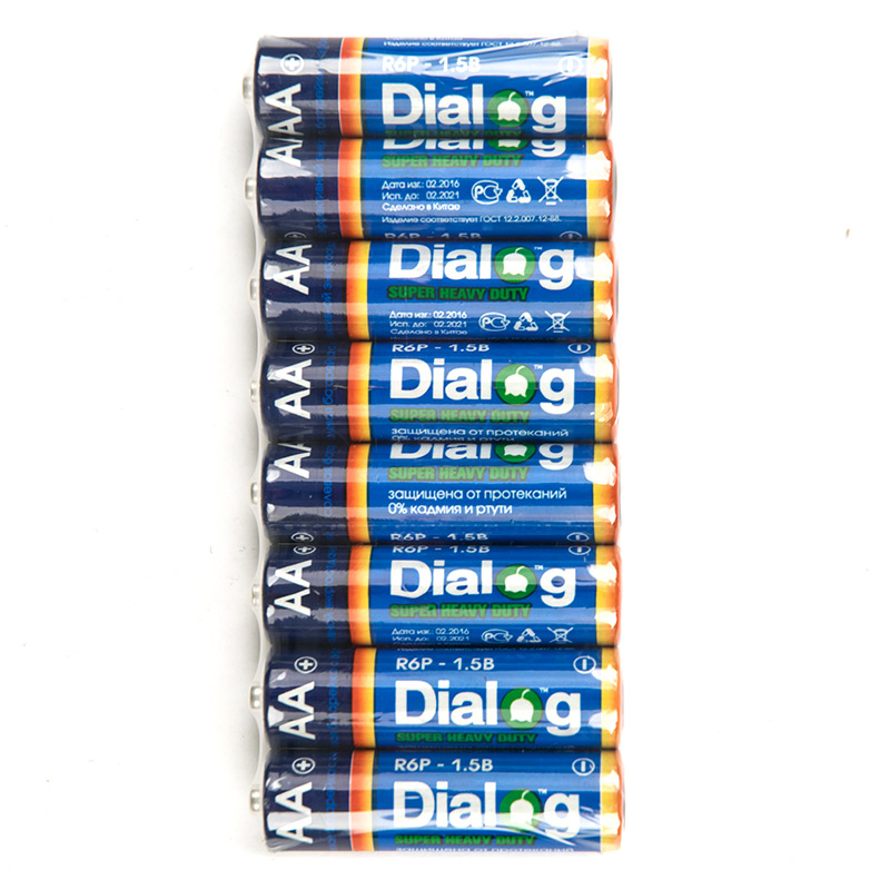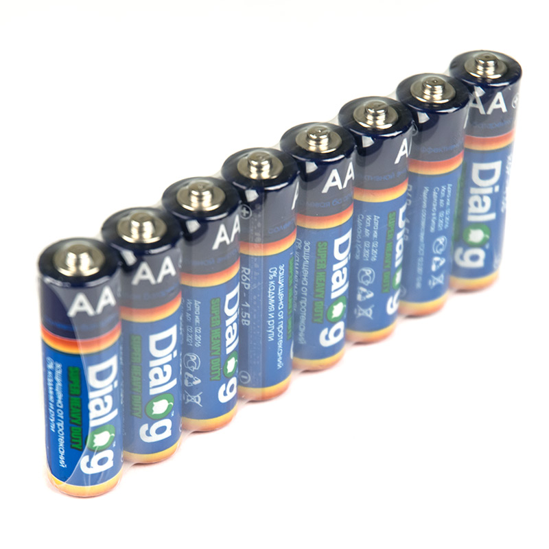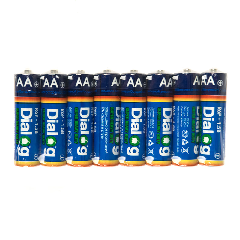 Солевые батарейки АА, 8 шт. в термоплёнке Dialog R6P-8S