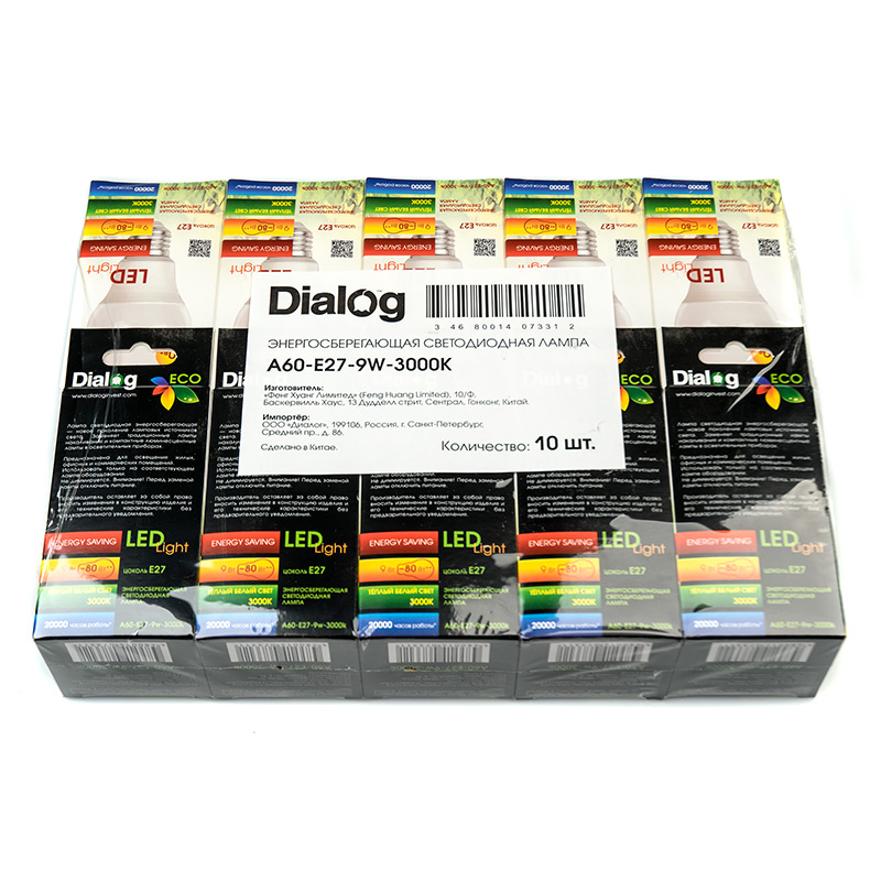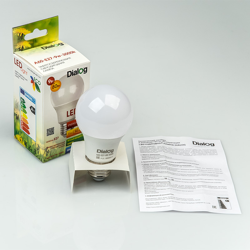 Энергосберегающая светодиодная лампа Dialog A60-E27-9W-3000K