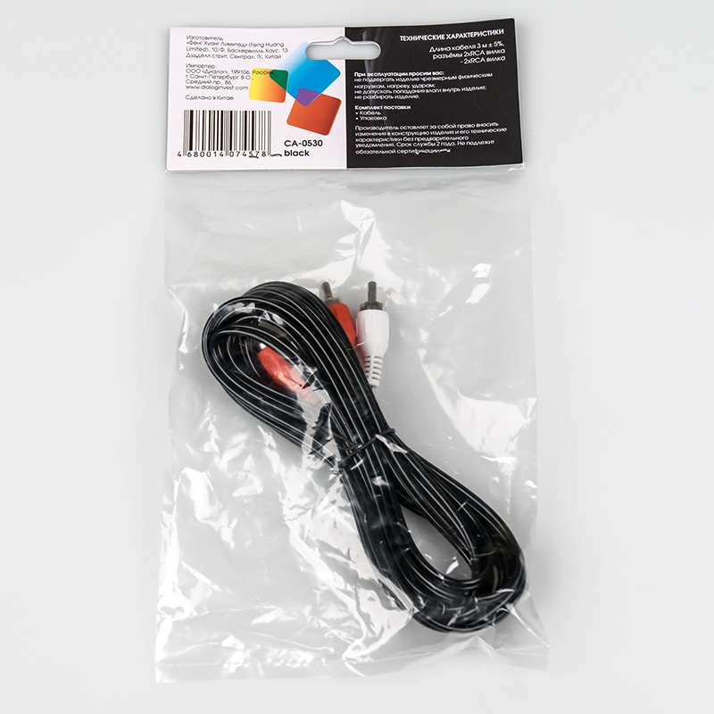 | Модель | CA-0530 Black | | Тип кабеля | Аналоговый аудиокабель 2xRCA-2xRCA | | Коннектор 1 | 2xRCA, вилка | | Коннектор 2 | 2xRCA, вилка | | Длина, м | 3,0 | | Применимость | Кабель предназначен для передачи аналогового стерео аудиосигнала | | Код ТНВЭД | 8544429007 |