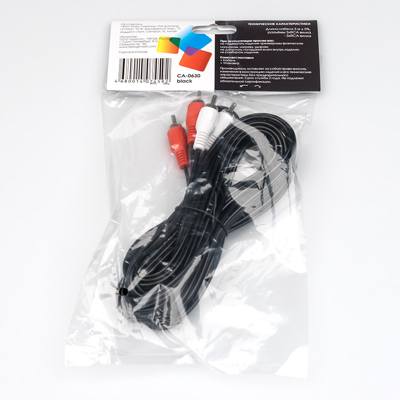 | Модель | CA-0630 Black | | Тип кабеля | Аналоговый аудио/видео кабель 3xRCA-3xRCA | | Коннектор 1 | 3xRCA, вилка | | Коннектор 2 | 3xRCA, вилка | | Длина, м | 3,0 | | Применимость | Кабель предназначен для передачи аналогового аудио- / видеосигнала | | Код ТНВЭД | 8544429007 |