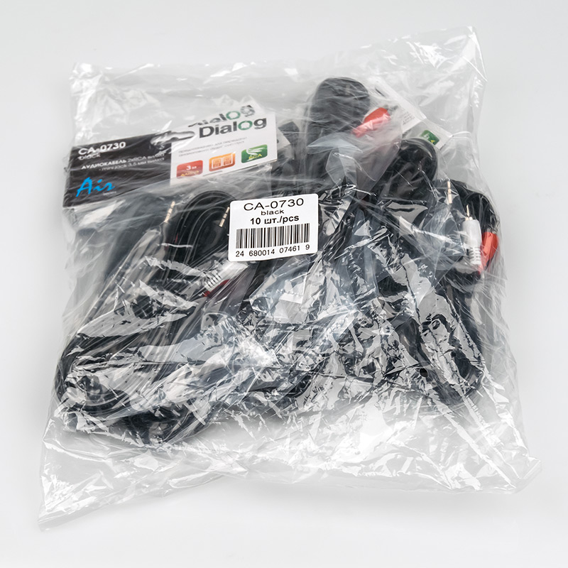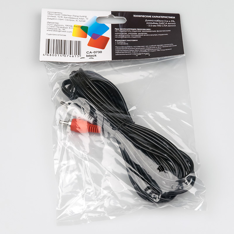 | Модель | CA-0730 Black | | Тип кабеля | Аналоговый аудиокабель 2xRCA - 3,5 мм mini-jack 3 м. | | Коннектор 1 | 2xRCA, вилка | | Коннектор 2 | 3,5 мм TRS CTIA (mini-jack), вилка | | Длина, м | 3,0 | | Применимость | Кабель предназначен для передачи аналогового аудиосигнала | | Код ТНВЭД | 8544429007 |