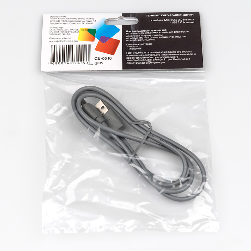 Кабель Micro USB Dialog CU-0310 Grey