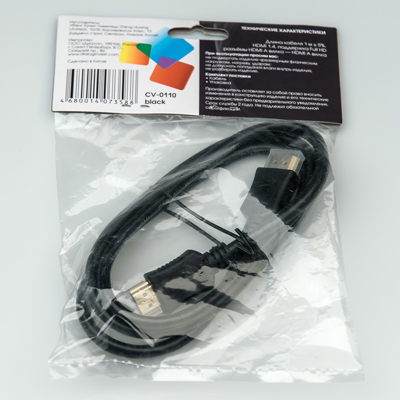 Кабель HDMI v1.4 Dialog CV-0110 Black| Описание модели | Кабель предназначен для соединения устройств с интерфейсом HDMI, например LED/LCD TV, плазменные TV, компьютерные мониторы, спутниковые ресиверы, проекторы, игровые консоли, компьютеры, ноутбуки, CD/DVD/Blue-Ray плееры, A/V ресиверы и т.д. | | Технические характеристики | Модель перенесена в архив 28.01.2023 | | Модель | CV-0110 Black | | Тип кабеля | Кабель HDMI A - HDMI A (m-m) | | Версия | HDMI 1.4 | | Коннектор 1 | HDMI тип А, вилка | | Коннектор 2 | HDMI тип А, вилка | | Длина, м | 1.0 | | Вес, г. | 55 | | Применимость | Кабель предназначен для соединения устройств с интерфейсом HDMI, например LED/LCD TV, плазменные TV, компьютерные мониторы, спутниковые ресиверы, проекторы, игровые консоли, компьютеры, ноутбуки, CD/DVD/Blue-Ray плееры, A/V ресиверы и т.д. | | Код ТНВЭД | 8544429007 |