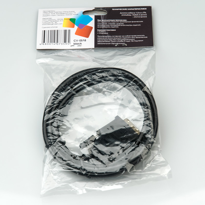 | Модель | CV-0518 Black | | Тип кабеля | Кабель HDMI A - DVI (m-m) | | Версия | HDMI 1.4 | | Коннектор 1 | HDMI тип А, вилка | | Коннектор 2 | DVI-D (Single Link), вилка | | Длина, м | 1.8 | | Вес, г. | 106 | | Применимость | Кабель предназначен для соединения компьютера или ноутбука с монитором, проектором или ЖК/плазменным телевизором. Максимальное возможное разрешение 1920x1200 при частоте обновления 60 Гц или 1920x1080 при 75 Гц. | | Код ТНВЭД | 8544429007 |