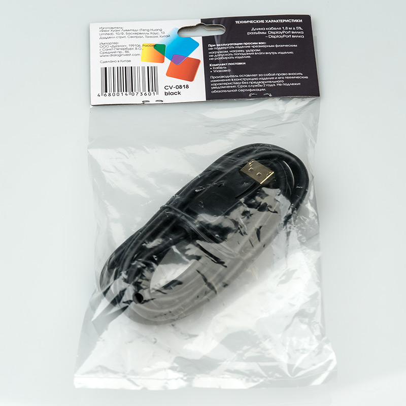 | Модель | CV-0818 Black | | Тип кабеля | Кабель DisplayPort | | Версия | v1.1 | | Коннектор 1 | DISPLAYPORT вилка | | Коннектор 2 | DISPLAYPORT вилка | | Длина, м | 1.8 | | Вес, г. | 82 | | Применимость | Высококачественный кабель предназначен для подключения, передачи видеосигнала и цифрового многоканального звука между устройствами, имеющими Displayport интерфейс: компьютеров, ноутбуков с телевизорами и мониторами | | Код ТНВЭД | 8544429007 |