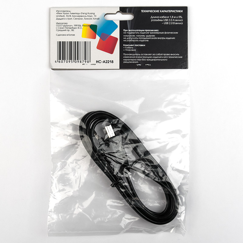 Кабель USB Type-A M - USB Type-B M v2.0 чёрный, 1,8м HC-A2218 main photo
