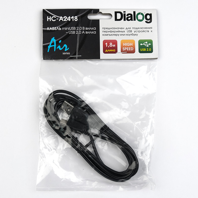 | Модель | HC-A2418 | | Тип кабеля | Кабель USB A - Mini USB B (m-m) | | Версия | USB 2.0 | | Коннектор 1 | USB тип А, вилка | | Коннектор 2 | Mini USB тип B, вилка | | Длина, м | 1,8 | | Вес, г. | 34 | | Применимость | Кабель предназначен для подключения к компьютеру или ноутбуку устройств с Mini USB 2.0 коннектором, например mp3 плееров, планшетных компьютеров, мобильных телефонов, видеорегистраторов, навигаторов, электронных книг, внешних HDD и т.д. | | Код ТНВЭД | 8544429007 |