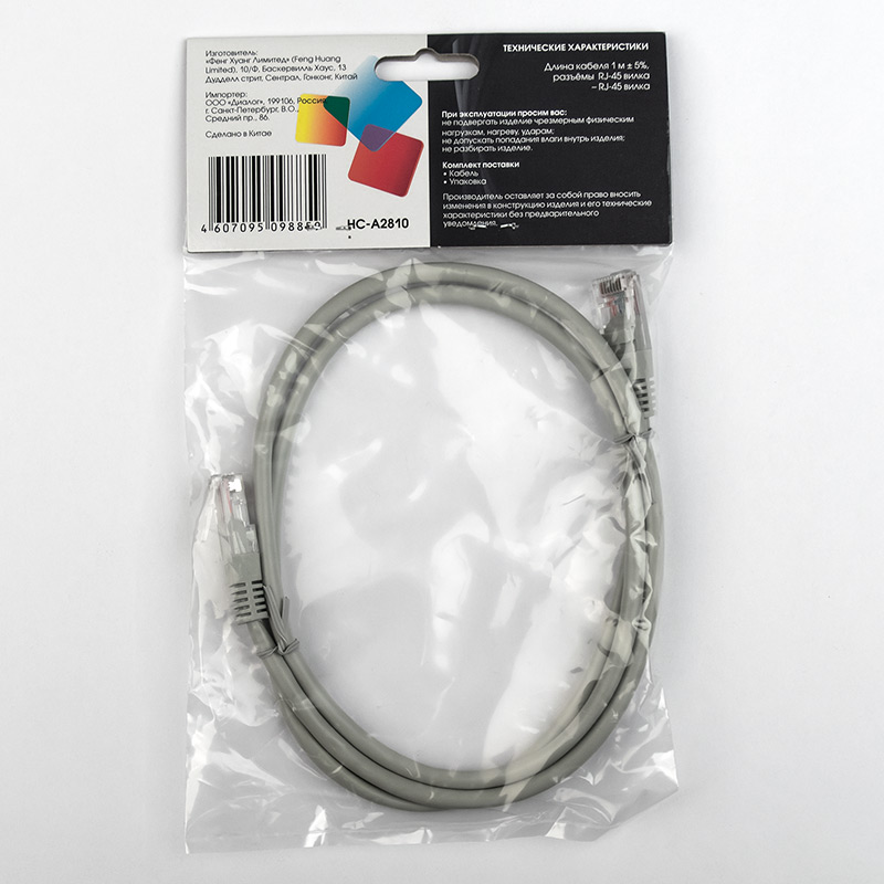 | Модель | HC-A2810 | | Тип кабеля | Патч-корд UTP Cat5e RJ-45 | | Версия | UTP Cat5e | | Коннектор 1 | 8P8C (RJ-45), вилка | | Коннектор 2 | 8P8C (RJ-45), вилка | | Длина, м | 1,0 | | Вес, г. | 27 | | Применимость | Кабель предназначен для передачи данных по локальной сети между компьютерами, маршрутизаторами, медиа плеерами, телевизорами и прочими устройствами с коннекторами RJ-45 | | Код ТНВЭД | 8544421000 |
