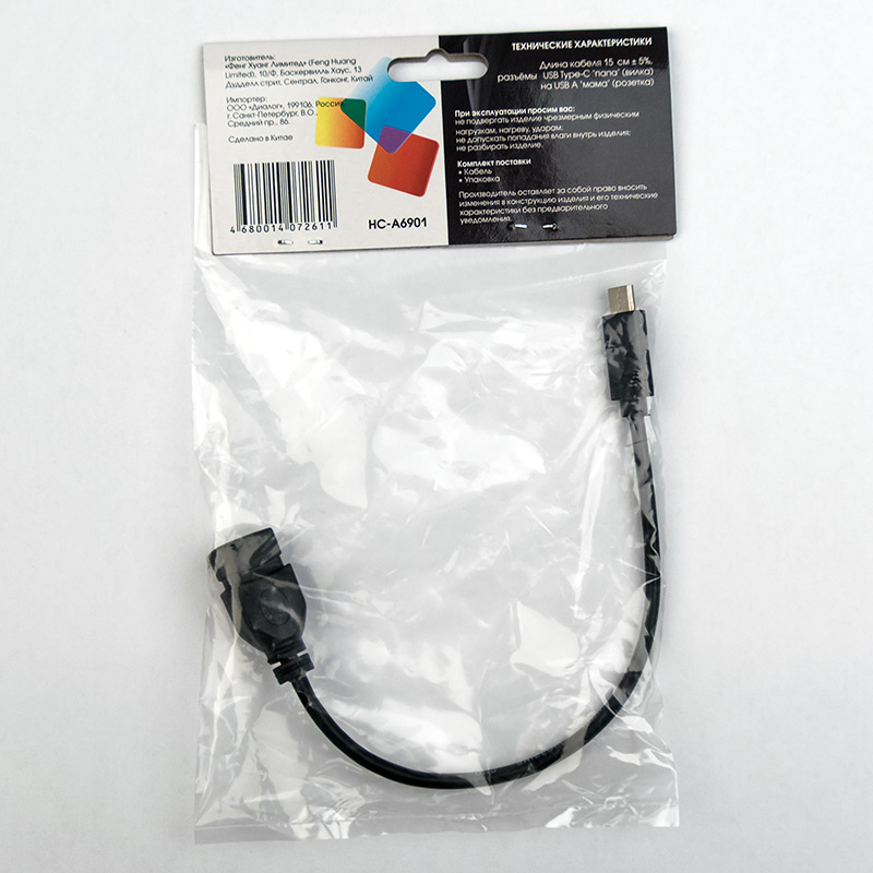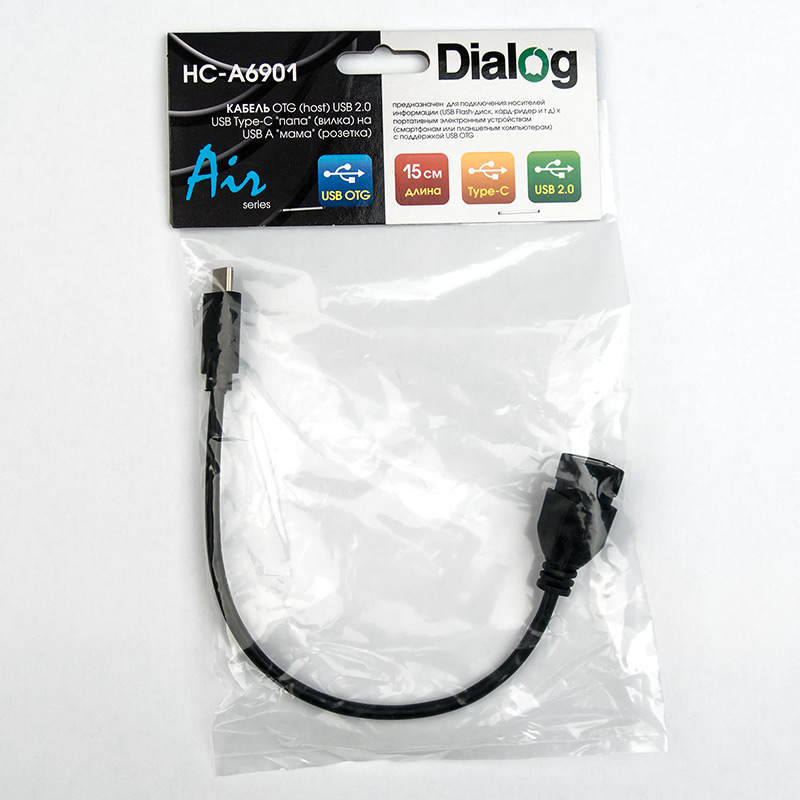 Кабель OTG (Host) USB Type-C - USB A, 15см Dialog HC-A6901| Описание модели | Кабель предназначен для подключения носителей информации (USB Flash-диск, кард-ридер и т.д.), игровых устройств (например, геймпадов и пр.), устройств ввода (мыши, клавиатуры и др.), принтеров/МФУ, 3G/LTE модемов к портативным электронным устройствам (смартфонам, планшетным компьютерам) с поддержкой USB OTG (On-The-Go), а также цифровых фотокамер к фотопринтерам с поддержкой данной технологии | | Технические характеристики | Модель перенесена в архив 26.11.2019 | | Модель | HC-A6901 | | Тип кабеля | Кабель OTG Type-C - USB A | | Версия | USB 2.0 | | Коннектор 1 | USB тип C, вилка | | Коннектор 2 | USB тип A, розетка | | Длина, м | 0,15 | | Вес, г. | 19 | | Применимость | Кабель предназначен для подключения USB Flash drive, cardreader, геймпадов, мышей, клавиатур, принтеров/МФУ, 3G/LTE модемов к смартфонам и планшетам с поддержкой USB OTG (On-The-Go) | | Код ТНВЭД | 8544429007 |