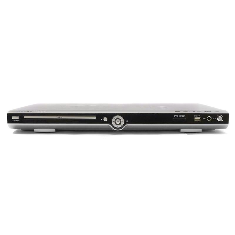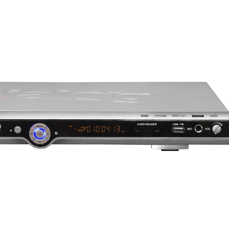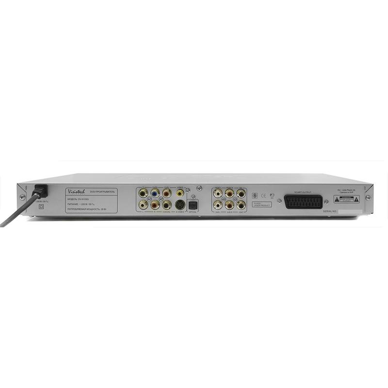 Домашний DVD-проигрыватель с караоке, поддержкой MPEG4, USB портом и слотом для карт SD/MMC/MS Visiotech DV-KX30CU| Технические характеристики | | Модель | Visiotech DV-KX30CU | | Форматы дисков | DVD, DVD+/-R, DVD+/-RW, MPEG4, DivX (v.3.11, 4.xx, 5.xx), VCD, SVCD, CD-DA (Audio CD), CD/CD-R/CD-RW, MP3, WMA (v7, v8, v9), Photo CD (JPEG), файлы поддерживаемых форматов с USB flash накопителей и карт памяти MMC, SD, MS | | Поддерживаемые видеоформаты | MPEG-1, MPEG-2, MPEG-4 | | Поддерживаемые аудиоформаты | MPEG-1 Layer 3, WMA | | Выходной видеосигнал | Системы NTSC и PAL. Чересстрочная и прогрессивная развертки. | | Выходной аудиосигнал | Декодированный сигнал Dolby Digital, цифровой сигнал Dolby Digital, цифровой сигнал DTS | | Входы | Микрофонное гнездо 6 мм, порт USB | | Выходы | VIDEO выход (RCA), S-VIDEO выход (DIN4), SCART, компонентный аудиовыход Y Cb/Pb Cr/Pr (3 RCA), оптический цифровой аудиовыход, коаксиальный цифровой аудиовыход, стерео аудиовыход (2 RCA), AC3 декодированный аудио выход 5.1 (6 RCA) | | Управление | Кнопка питания, регулятор громкости микрофона, кнопка открытия/закрытия лотка, кнопка воспроизведения/паузы, кнопка остановки воспроизведения, кнопка перемотки вперед, кнопка перемотки назад, кнопка вызова меню диска | | Загрузка дисков | Фронтальная, лоток | | Пульт ДУ | Полнофункциональный, инфракрасный, 43 управляющие кнопки | | Караоке | Да | | Аудио ЦАП | 24 бит, 96 КГц, сигнал/шум > 98 дБ | | Видео ЦАП | 10 бит, 54 мГц | | Габаритные размеры (В*Ш*Г, мм) | 38*430*248 | | Вес (кг) | 2,8 | | Комплект поставки | DVD проигрыватель DV-KX30CU - 1 шт., кабель 3RCA-3RCA - 1 шт., ИК ПДУ - 1 шт., батарейки для ПДУ (ААА) - 2 шт., упаковка, инструкция по эксплуатации с гарантийным талоном. | | Гарантийный срок, мес. | 12 | | Cрок службы, мес. | 60 |
