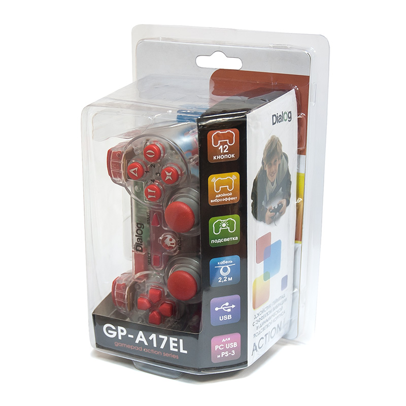 Продукция Dialog :: Геймпад Dialog GP-A17EL - Геймпад с эффектом вибрации, подсветкой и поддержкой PS3