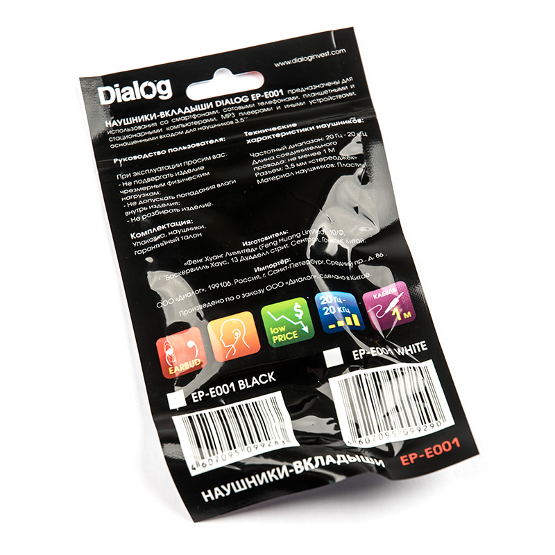 Наушники-вкладыши Dialog EP-E001 предназначены для использования со смартфонами, сотовыми телефонами, планшетными и стационарными компьютерами, mp3 плеерами и иными устройствами, оснащёнными входом для наушников 3.5". |