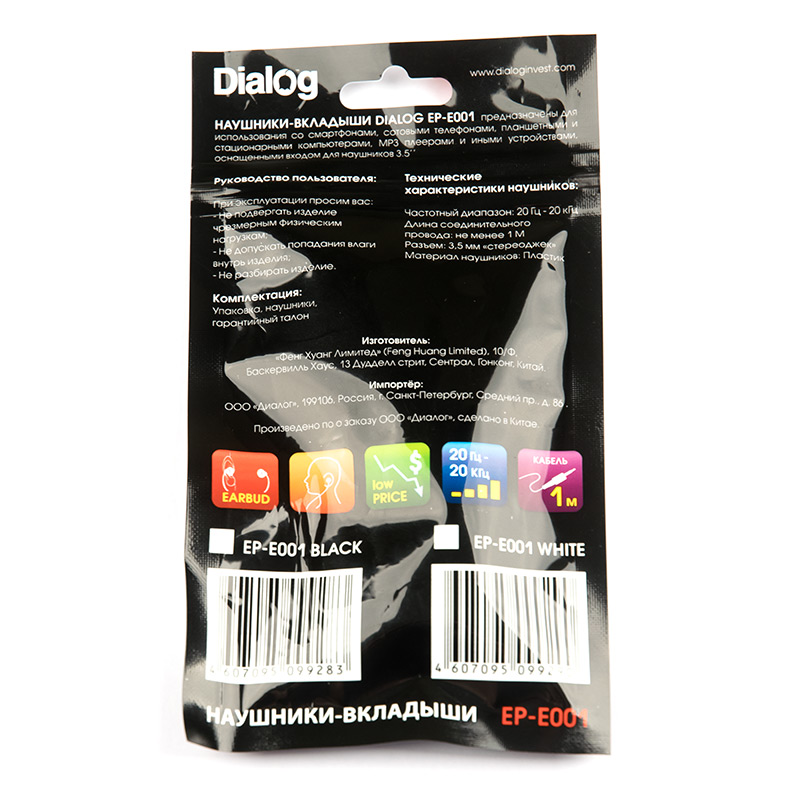 Наушники-вкладыши Dialog EP-E001 предназначены для использования со смартфонами, сотовыми телефонами, планшетными и стационарными компьютерами, mp3 плеерами и иными устройствами, оснащёнными входом для наушников 3.5". |