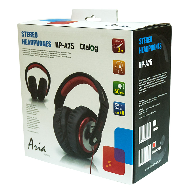 Закрытые мониторные наушники Dialog HP-A75 BLACK-RED| Описание модели | Наушники Dialog Aria HP-A75 - это отличные мониторные наушники с чувствительными 64-Омными 50мм динамиками. Чашки этих наушников жестко крепятся к оголовью, но несмотря на это они великолепно сидят на голове благодаря большим и невероятно мягким амбушюрам. Динамики закрыты не просто сеточкой, а специальной мягкой прокладкой. Всё это создаёт приятное ощущение, что на уши надеты две мягкие подушки. Благодаря жесткому креплению повышается надежность всей конструкции; более того, основание оголовья, включая раздвижную часть, сделано из металла. Закрытое акустическое оформление в совокупности с плотно облегающими голову массивными мягкими амбушюрами прекрасно изолирует слушателя от внешних звуков, при этом ушная раковина находится внутри амбушюров и давление приходится на голову вокруг ушей, это значительно увеличивает срок комфортного ношения наушников. Оголовье и амбушюры сделаны из мягкого синтетического материала, который легко очищается от загрязнений. Внутри амбушюр - экстрамягкий пенополиуретан. Несмотря на то, что визуально наушники производят впечатление массивных и тяжелых, в действительности они очень мягкие и очень лёгкие - вес наушников вместе с кабелем составляет всего 387 г, без кабеля - 322 г. Еще одна особенность этой модели - трехметровый кабель с Г-образным коннектором (позолоченный стереоджек 3.5мм). Звучание этой модели можно охарактеризовать как ровное, без существенных неравномерностей АЧХ, что позволяет использовать их как мониторные наушники. | | Технические характеристики | Модель перенесена в архив 23.10.2018 | | Модель: | HP-A75 BLACK-RED | | Режим | стерео | | Размер динамика (мм) | 50 | | Сопротивление (Ом) | 41 | | Чувствительность (дБ/мВт) | 88 ± 3 @ 1 КГц | | Частотный диапазон (Гц - кГц) | 12-25 | | Акустическое оформление | закрытое | | Чашки | пластик + металл, жесткое крепление к оголовью | | Амбушюры | экстрамягкий пенополиуретан | | Оголовье | регулируемая длина, металлическая основа + пластик | | Кабель | 3 ± 10% | | Тип разъема | 3.5 мм TRS миниджек (Г-образный) | | Вес наушников с кабелем (г.) | 387 | | Вес наушников без кабеля (г.) | 322 |