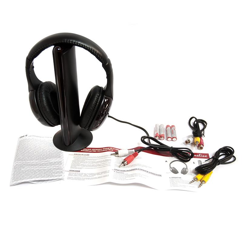 Комплект поставкиНаушники, передатчик, кабель-переходник 3.5 мм стереоджек - 2xRCA-F, кабель 3.5 мм стереоджек - 3.5 мм стереоджек, батарейки ААА (неперезаряжаемые) 4 шт, руководство пользователя, гарантийный талон, упаковка