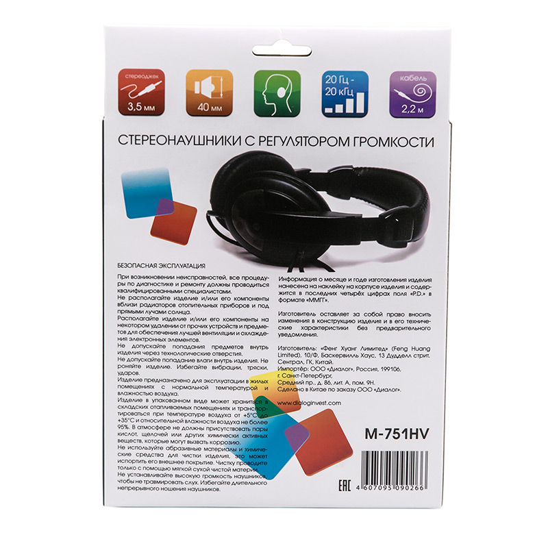 Наушники с регулятором громкости Dialog M-751HV