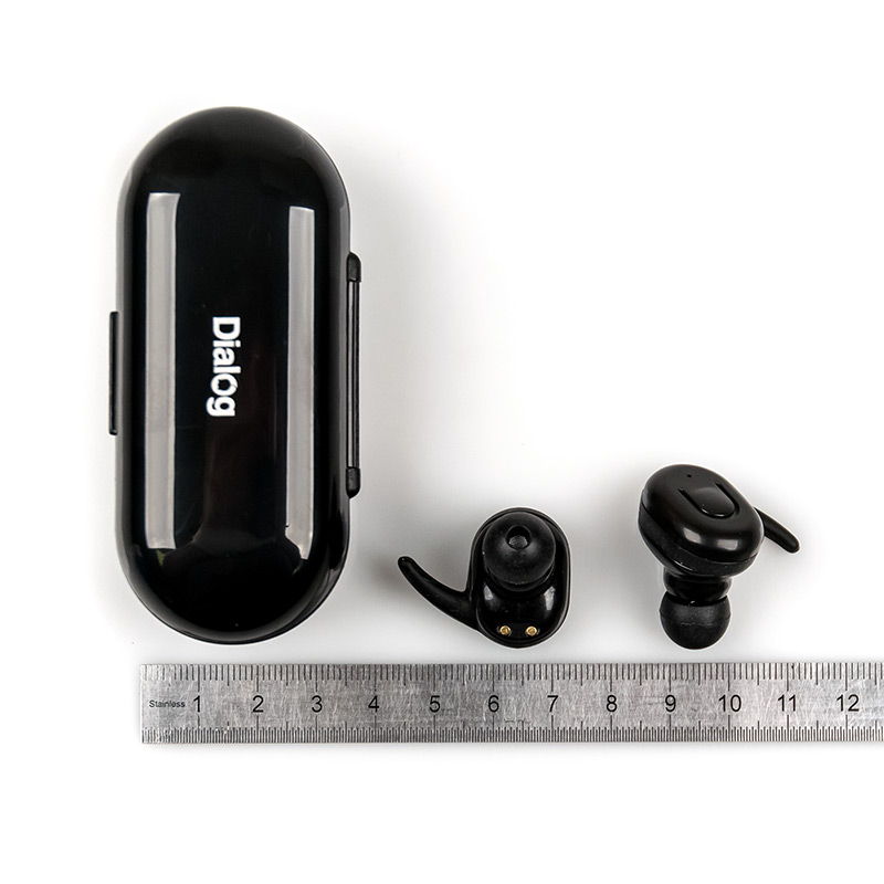 Гарнитура Dialog ES-150BT Black| Описание модели | Dialog ES-150BT это компактная гарнитура со встроенным Bluetooth модулем версии 5.0 и аккумуляторной батареей. Гарнитура предназначена для использования с телефонами, планшетами и другими устройствами, способными использовать внешние устройства воспроизведения через интерфейс Bluetooth. Современный беспроводной стандарт Bluetooth 5.0 обеспечивает длительное время работы без подзарядки, увеличенный радиус уверенного приёма и высокую скорость соединения. Гарнитура подзаряжается от компактной переносной докстанции, когда не используется. При разговоре в режиме гарнитуры голос собесседника воспроизводится в обоих ушах. Силиконовые уплотнители обеспечивают отличную изоляцию от внешних звуков, улучшенную передачу низких частот и надёжную фиксацию наушника в ушном канале. Если подключается только один наушникУбедитесь, что блютус-модуль вашего телефона или планшета выключен. Включите питание обоих наушников трёхсекундным нажатием на кнопки до появления голосового сообщения «Power on». При включении держите наушники рядом. Для синхронизации наушников дважды нажмите на кнопку одного из них. В случае успешной синхронизации у одного из наушников продолжится попеременное мигание синего и красного светодиодов, у другого наушника синий светодиод будет давать редкие вспышки. Включите блютус-модуль вашего телефона или планшета и начните поиск устройств, подключитесь к найденному устройству. | | Технические характеристики | Модель перенесена в архив 19.05.2020 | | Модель: | ES-150BT Black | | Интерфейс/спецификация | Bluetooth | | Радиус уверенного приёма, м | Излучаемая мощность и радиус действия соответствует классу 2 | | Версия Bluetooth | 5.0 EDR | | Профили Bluetooth | Advanced Audio Distribution Profile (A2DP), Audio / Video Remote Control Profile (AVRCP), Headset Profile (HSP), Hands-Free Profile (HFP) | | Режимы работы | Беспроводные наушники; беспроводная гарнитура | | Тип аккумулятора | встроенный Li-Pol (и в наушниках и в крэдле - докстанции) | | Ёмкость аккумулятора, мАч | в наушниках 2*60 мА*ч, в крэдле - докстанции 400 мА*ч | | Длительность автономной работы | При разговоре и/или при проигрывании музыки до 2 часов (зависит от способа использования, интенсивности, громкости) | | Длительность автономной работы в режиме ожидания | до 200 часов | | Тип зарядного кабеля | USB | | Длительность полной зарядки аккумулятора, ч | около 2 часов | | Индикация | Светодиодный индикатор режима работы и зарядки на наушниках и на докстанции (подробная информация в руководстве пользователя) | | Управление | Многофункциональная кнопка на каждом наушнике: включение/выключение, ответ на звонок/завершение звонка, воспроизведение/пауза, перемотка | | Режим | стерео | | Размер динамика (мм) | 10 | | Сопротивление (Ом) | 32 ± 15% | | Чувствительность (дБ/мВт) | 96 ± 5 | | Частотный диапазон (Гц - кГц) | 20-20 | | Акустическое оформление | вкладыши, канальные | | Чашки | Чёрный глянцевый пластик | | Амбушюры | силикон, черный | | Кабель | Кабель USB-MicroUSB для подзарядки крэдла (докстанции) | | Тип разъема | MicroUSB в докстанции | | Вес наушников без кабеля (г.) | Докстанция: 34 г, наушники: 2*4,5 г | | Микрофон | | | Тип микрофона | конденсаторный | | Режим | моно | | Конструкция микрофона | два микрофона (по одному в каждом вкладыше) | | Сопротивление (КОм) | 2,2 | | Чувствительность (дБ) | -42 ± 3 |